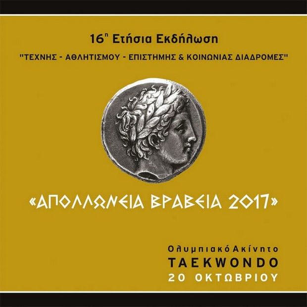 Την Παρασκευή 20 Οκτωβρίου 2017 “έρχεται” η 16η κατά σειρά Ετήσια Εκδήλωση “ΤΕΧΝΗΣ – ΑΘΛΗΤΙΣΜΟΥ – ΕΠΙΣΤΗΜΗΣ & ΚΟΙΝΩΝΙΑΣ, ΔΙΑΔΡΟΜΕΣ” “ΑΠΟΛΛΩΝΕΙΑ ΒΡΑΒΕΙΑ 2017”. Ο Σύλλογος Ελλήνων Ολυμπιονικών (Σ.Ε.Ο.), το Ινστιτούτο Διεθνούς και Ελληνικού Αθλητικού Δικαίου (Ι.Δ.Ε.Α.Δ.), η Πανελλήνια Επιστημονική Φιλογυμναστική Εταιρεία (Π.Ε.Φ.Ε.), ο Πανελλήνιος Σύνδεσμος Γυμναστηρίων (ΠΑ.ΣΥ.ΓΥ.) και ο Σύλλογος Ιδιοκτητών Γυμναστηρίων Αττικής (Σ.Ι.Γ.Α.), συνδιοργανώνουν μια διοργάνωση που φέτος θα έχει “άρωμα” έπους του ’87.