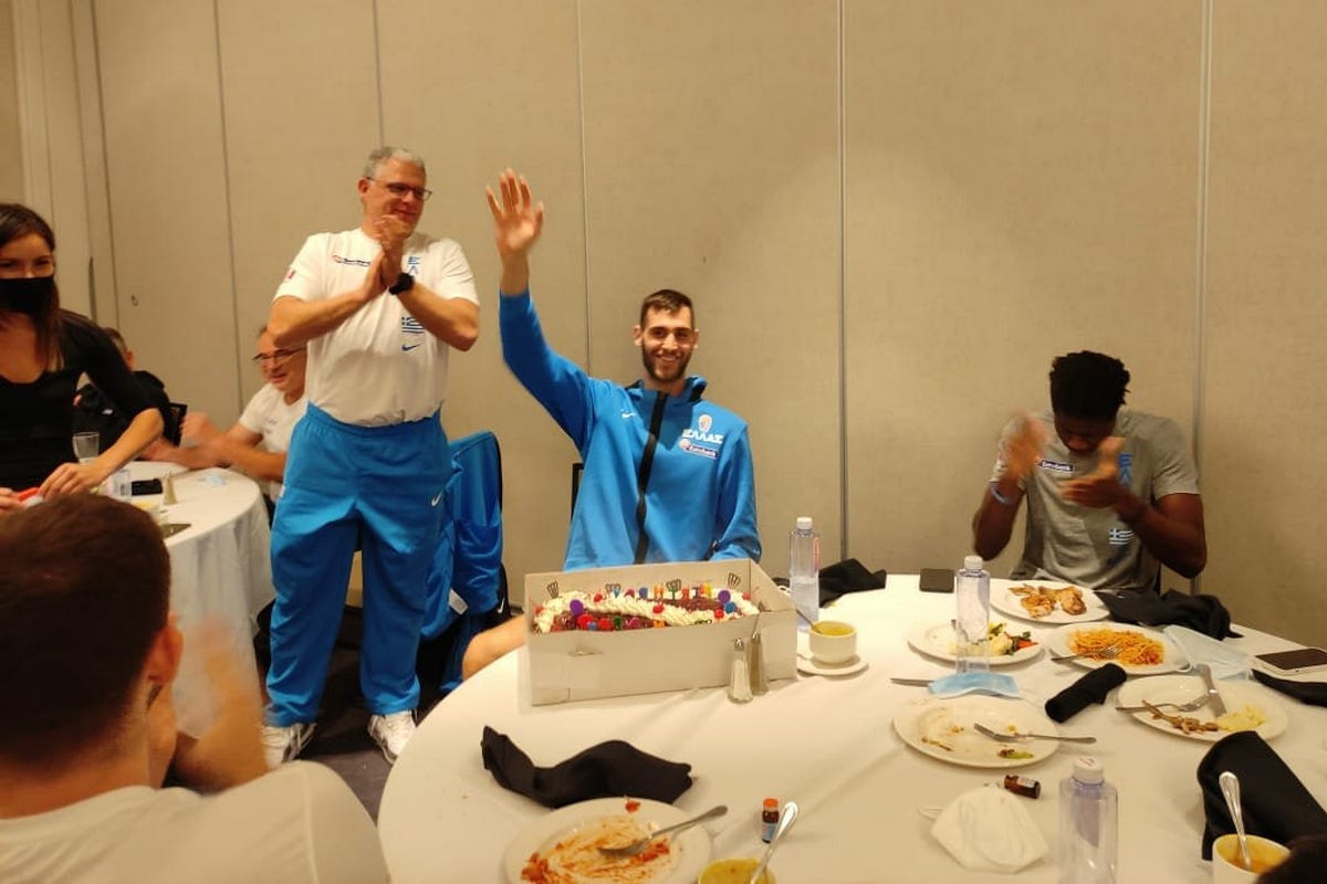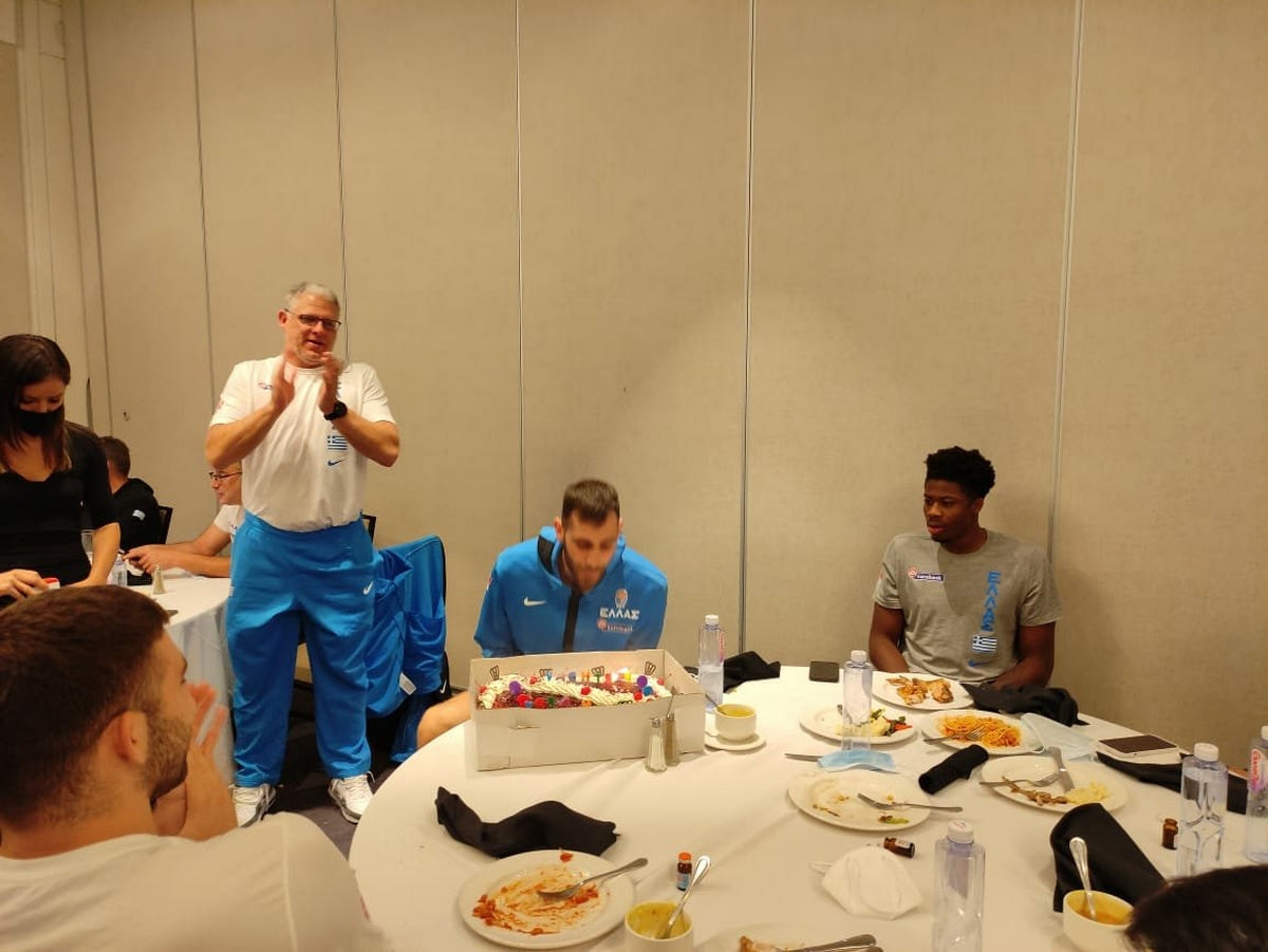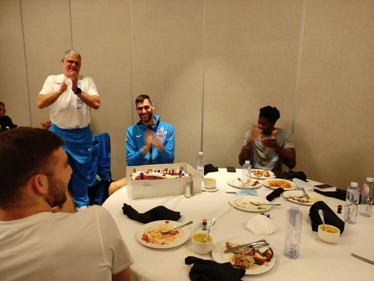 Με τον καλύτερο τρόπο έκλεισε η μέρα για τον εορτάζοντα Γιώργο Παπαγιάννη, καθώς μετά από την μεγάλη νίκη της Εθνικής επί της Τουρκίας στον ημιτελικό του Προολυμπιακού τουρνουά, ο διεθνής σέντερ έσβησε 24 κεράκια στην τούρτα του και γιόρτασε τα γενέθλιά του με την υπόλοιπη αποστολή της Εθνικής.