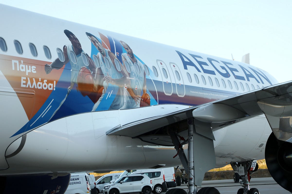 Εθνική Μπάσκετ: Αεροσκάφος της Aegean Airlines ντύθηκε με τις φιγούρες του Γιάννη Αντετοκούνμπο και των υπόλοιπων διεθνών