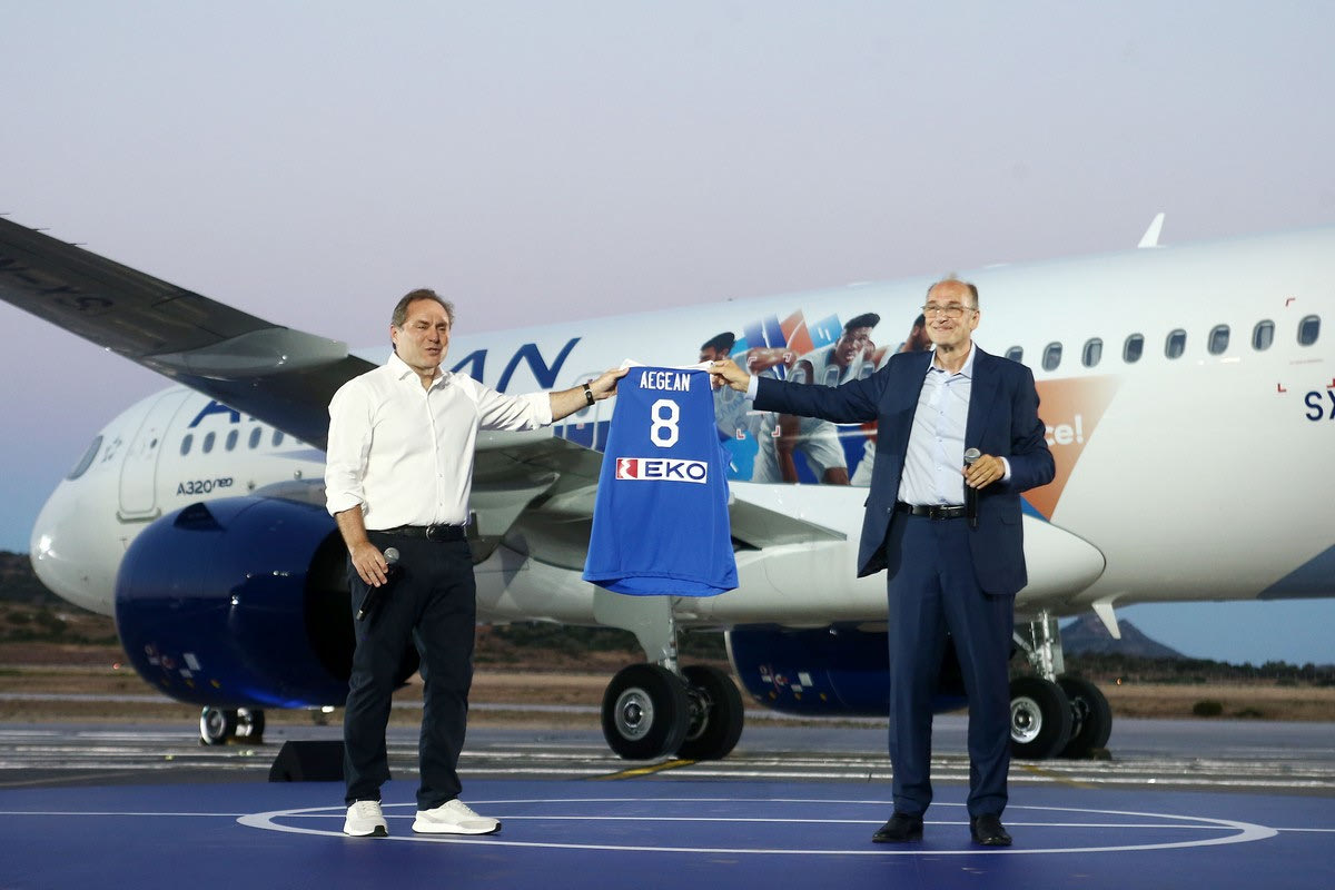 Ο πρόεδρος της ΕΟΚ, Βαγγέλης Λιόλιος, δήλωσε: “Μαζί με την AEGEAN θα πετά και η Εθνική ομάδα κι αυτό μας κάνει πραγματικά περήφανους. Συνειδητοποίησα πόσο αγαπάτε τις εθνικές ομάδες εσείς στην AEGEAN. Δεν είστε απλά ένας χορηγός, είστε ο εθνικός αερομεταφορέας μας και είστε σάρκα από τη σάρκα μας. Θέλουμε με αυτό το αεροπλάνο να γυρίσουμε στην Ελλάδα τα επόμενα χρόνια με διακρίσεις και μετάλλια. Η εικόνα του αεροσκάφους με τους Έλληνες παίκτες δεν είναι μια απλή εικόνα, συμβολίζει την πίστη για το ελληνικό μπάσκετ. Εύχομαι όσο ψηλά πετάξει το αεροπλάνο αυτό να πετάξει και το ελληνικό μπάσκετ και η Εθνική ομάδα. Θέλω να ανακοινώσω πως το Τουρνουά Ακρόπολις θα ονομάζεται πλέον τουρνουά Aegean Ακρόπολις. Θα διεξαχθεί 17-19 Αυγούστου και ελπίζουμε το γήπεδο να γεμίσει για να πάρουμε δύναμη για τις επίσημες υποχρεώσεις που ακολουθούν“.