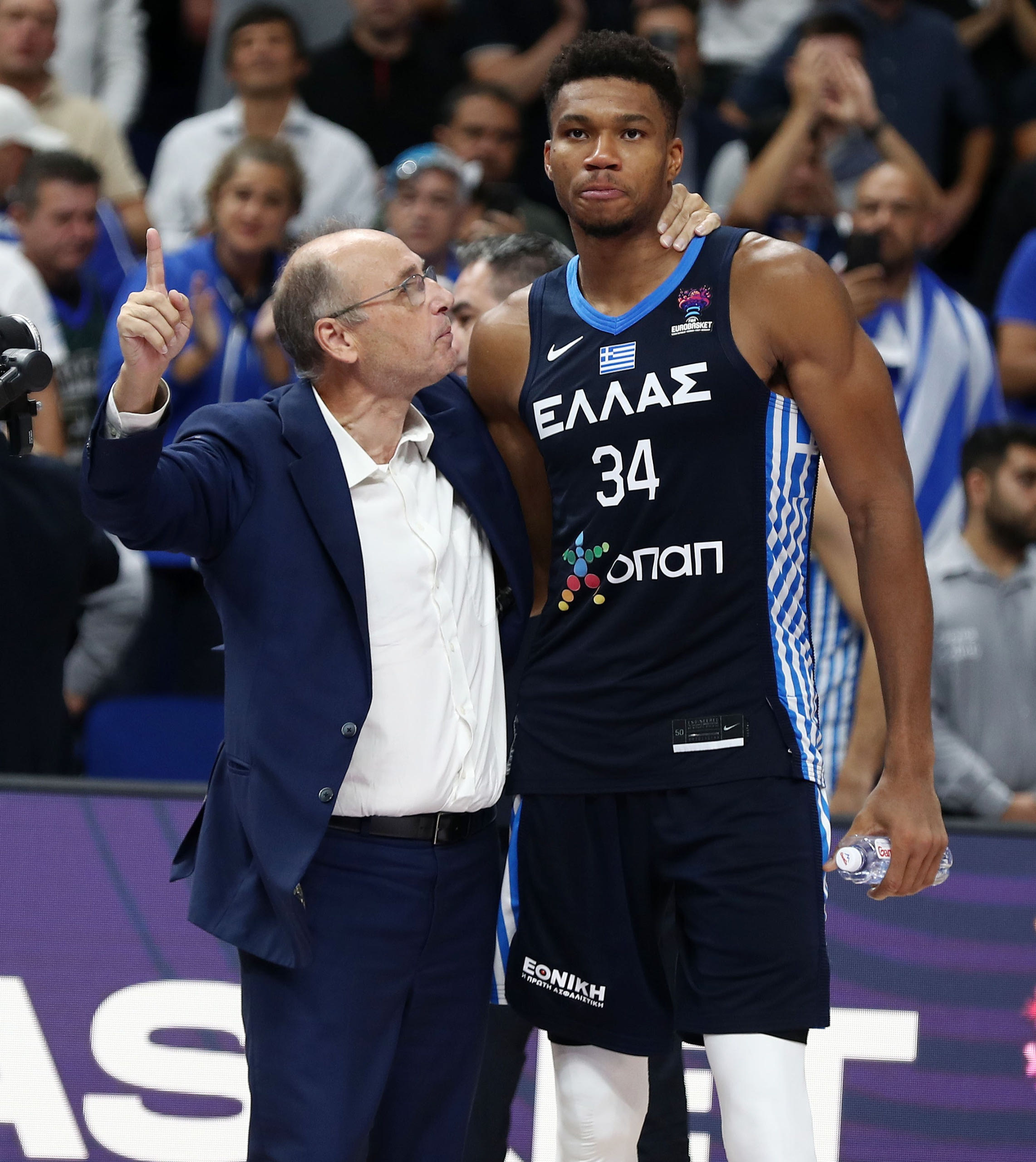 Ο Βαγγέλης Λιόλιος βρέθηκε στο πλευρό της Εθνικής στο Βερολίνο και μετά από τον αποκλεισμό αγκάλιασε και συνομίλησε για λίγο με τον Γιάννη Αντετοκούνμπο.