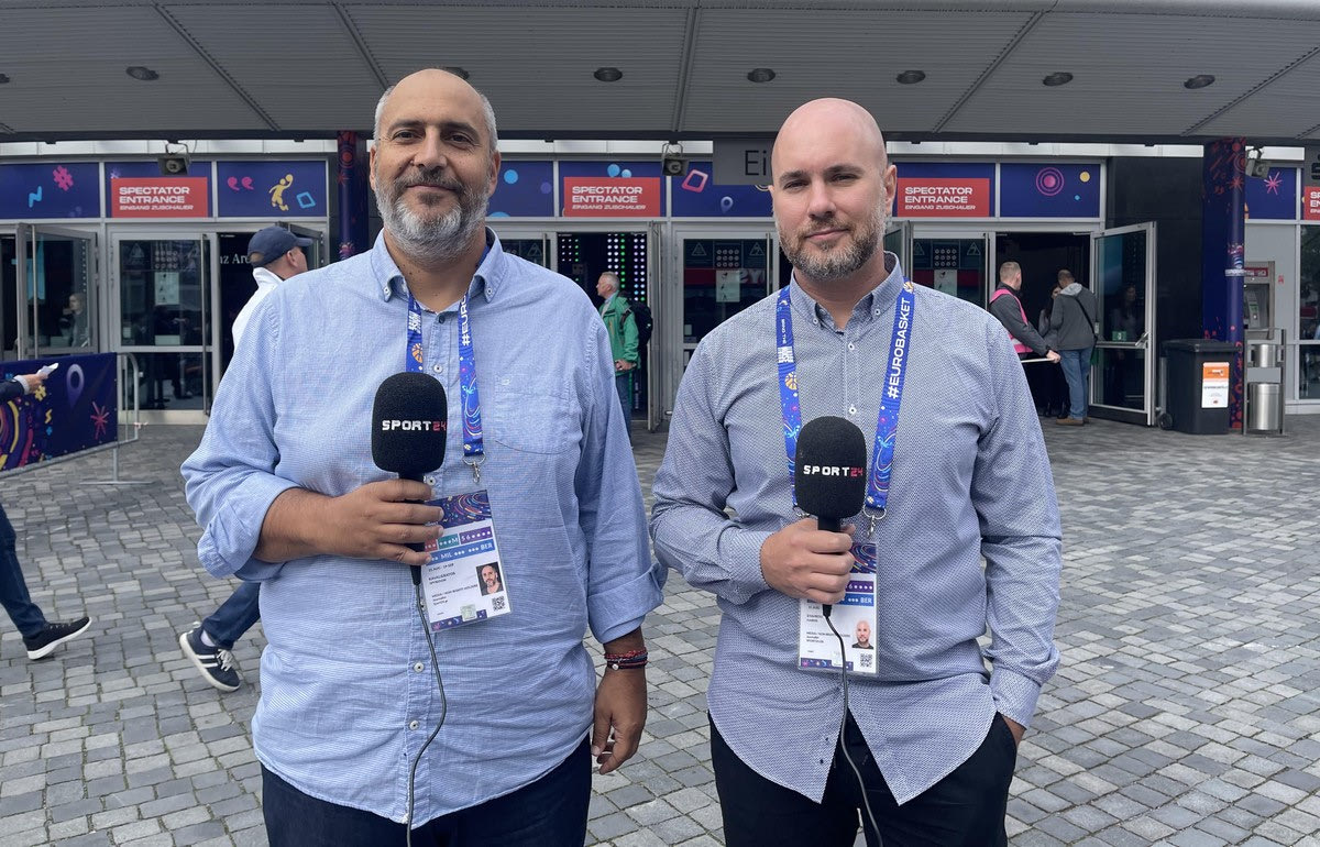 Εθνική μπάσκετ: Καβαλιεράτος – Σταύρου έξω από την Mercedes-Benz Arena έδωσαν το πρώτο κλίμα πριν τη μάχη της γαλανόλευκης