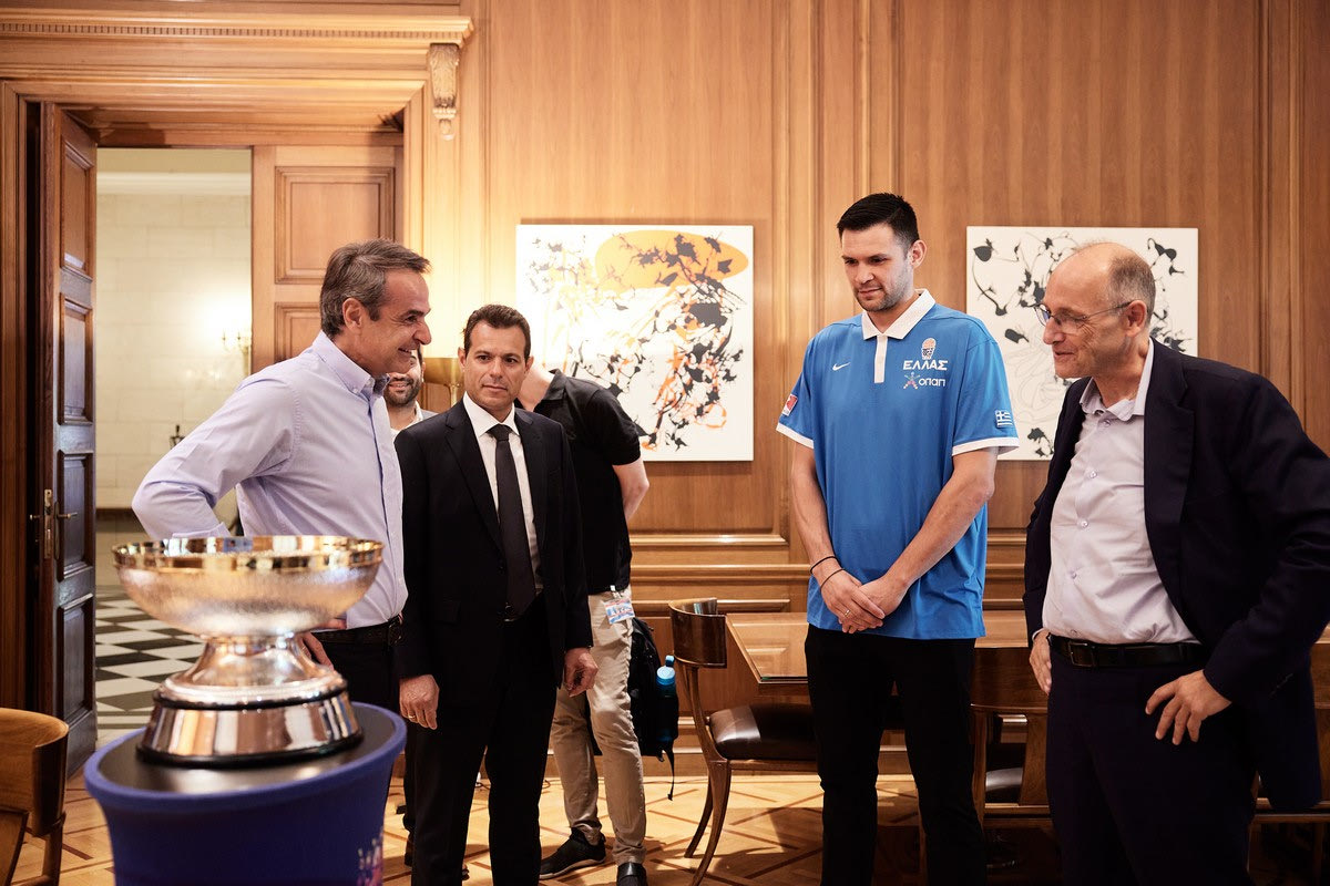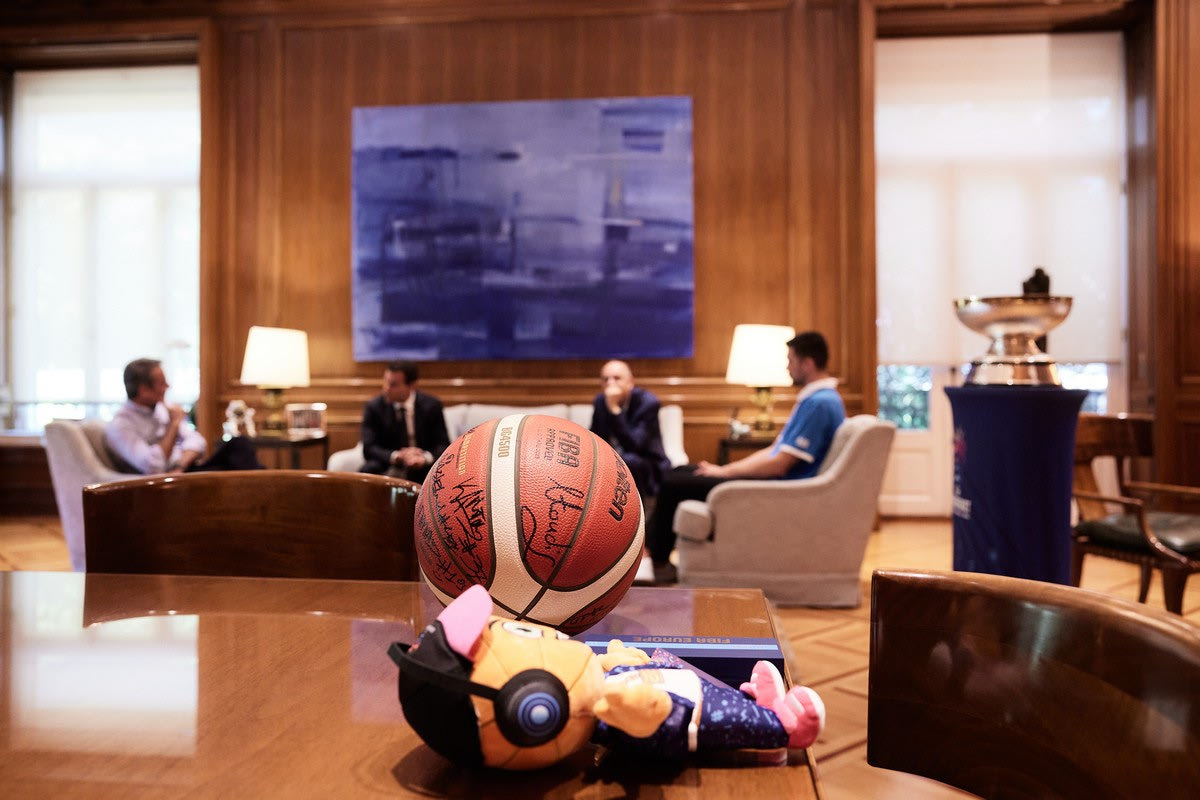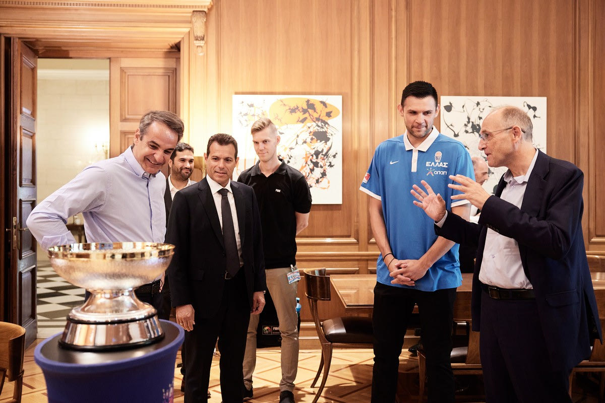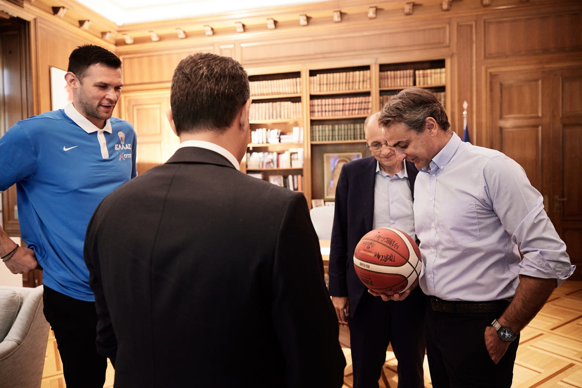 Συνάντηση του Κυριάκου Μητσοτάκη, με τον Πρόεδρο της ΕΟΚ, Βαγγέλη Λιόλιο, τον ομοσπονδιακό προπονητή Δημήτρη Ιτούδη και τον διεθνή, Κώστα Παπανικολάου. Δόθηκε στον Πρωθυπουργό μία μπάλα υπογεγραμμένη από τους παίκτες της γαλανόλευκης και εκείνος ευχήθηκε καλή επιτυχία στη μάχη του Eurobasket.
