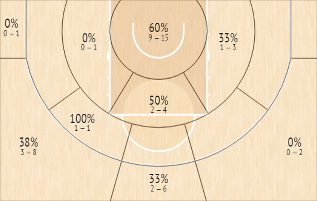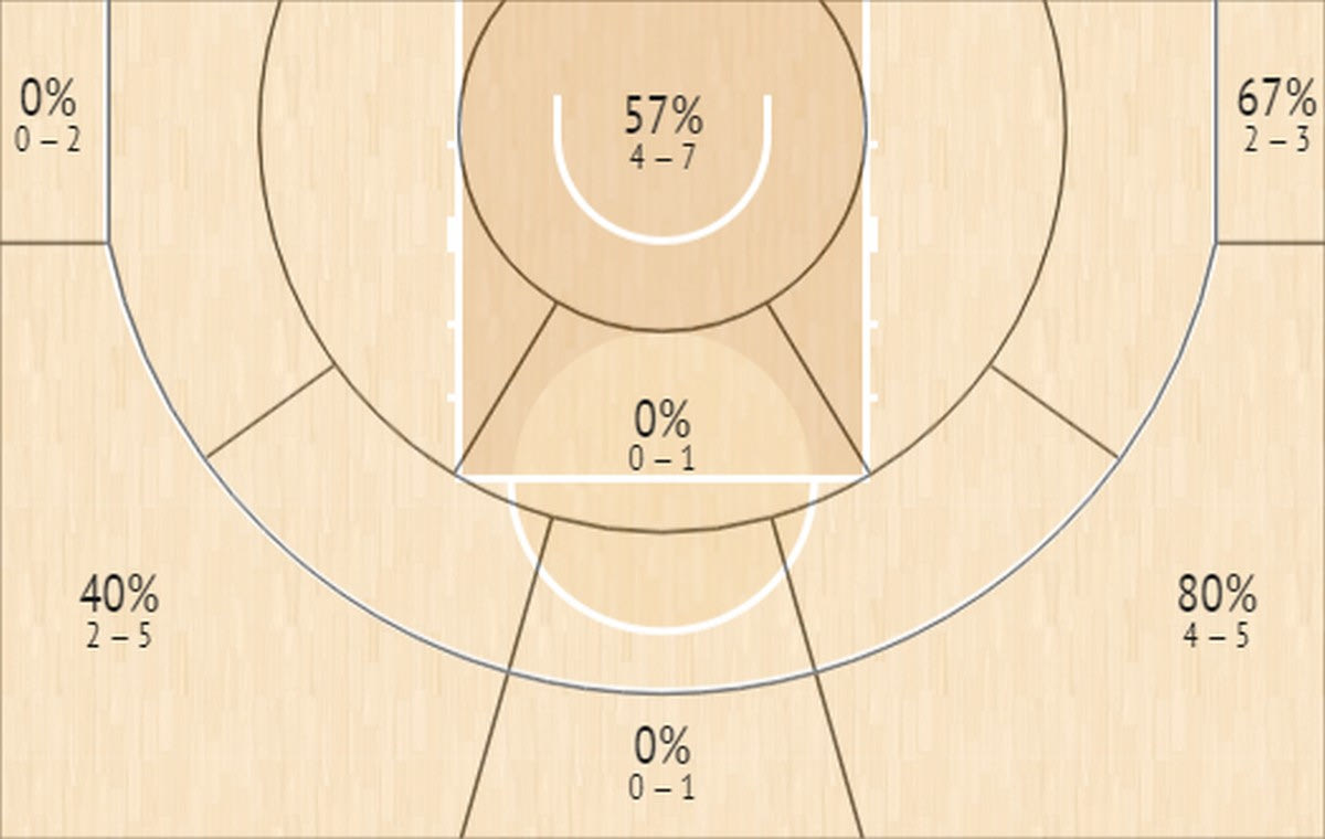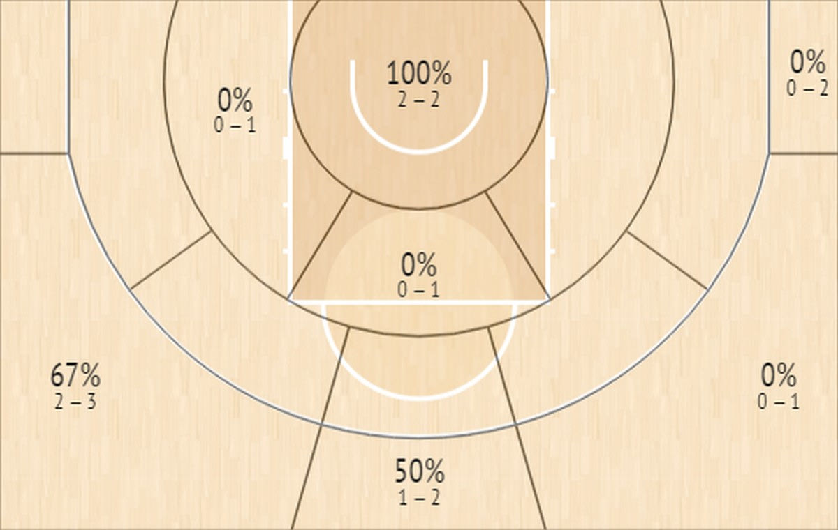Οι αριθμοί του: 3.8 πόντοι, 2 ριμπάουντ και 1 ασίστ μέσο όρο σε 19 λεπτά συμμετοχής