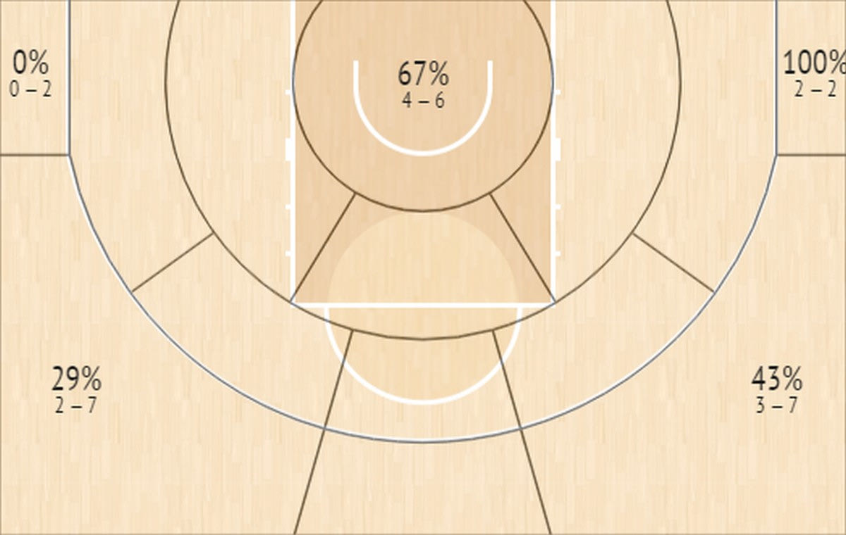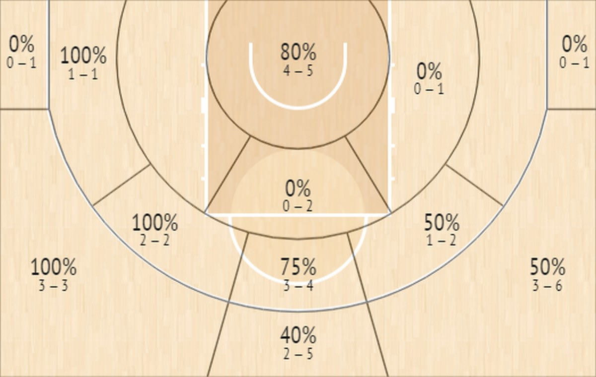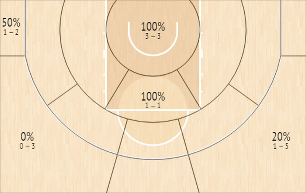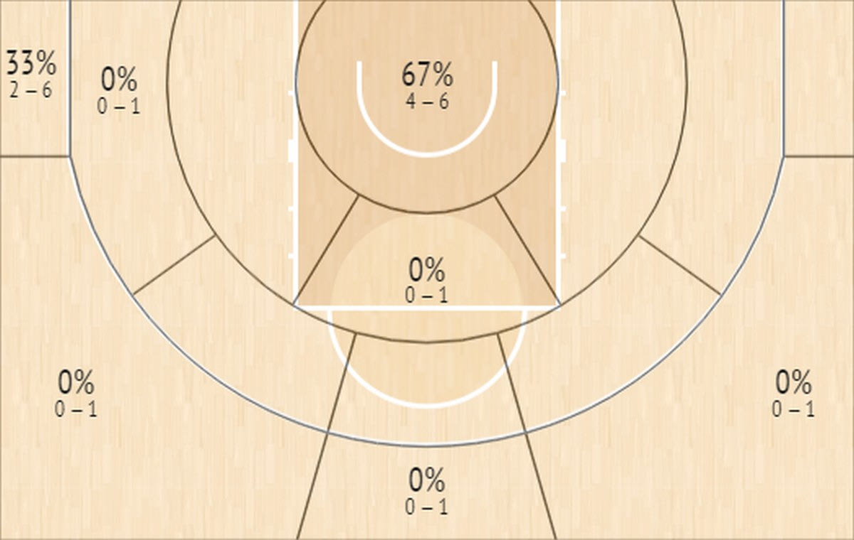 Οι αριθμοί του: 3.8 πόντοι, 2 ριμπάουντ και 1 ασίστ μέσο όρο σε 19 λεπτά συμμετοχής