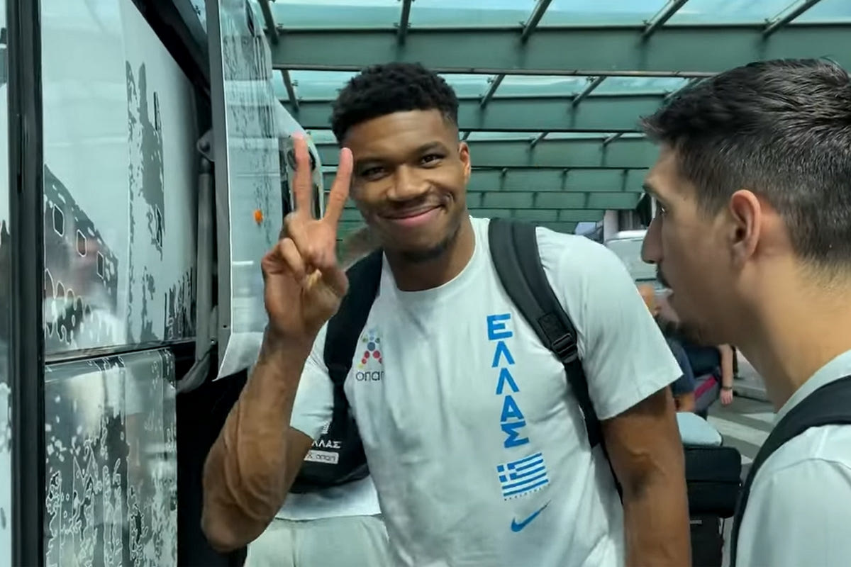 Η κάμερα του SPORT24 ακολούθησε τους διεθνείς από την στιγμή που βγήκαν στον χώρο μέχρι να μπουν στο λεωφορείο, με τον Γιάννη Αντετοκούνμπο να έχει και έναν διάλογο με τον Χάρη Σταύρου.