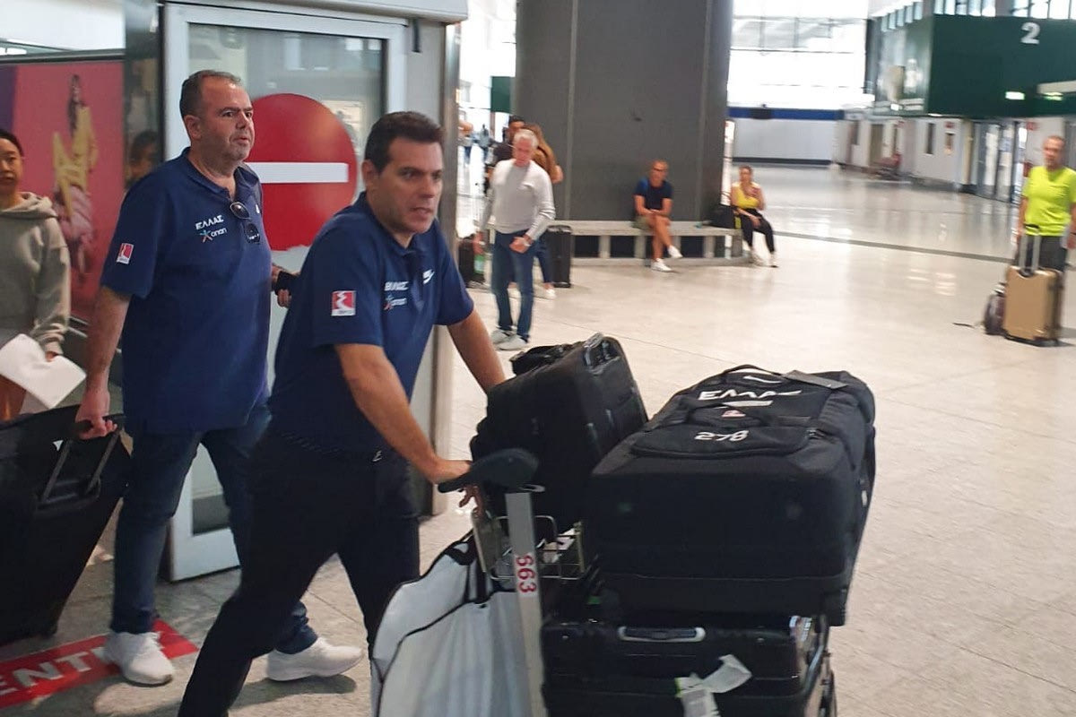 Η αποστολή του SPORT24 βρέθηκε στο αεροδρόμιο, με τους Σπύρο Καβαλιεράτο, Χάρη Σταύρου και Αλέξανδρο Τρίγκα να υποδέχονται την Εθνική.