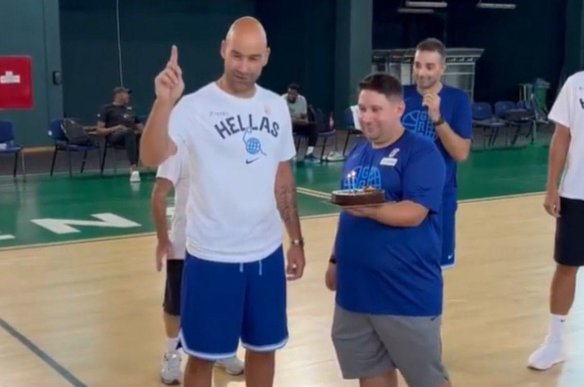 Ο Βασίλης Σπανούλης γιόρτασε τα γενέθλιά του την Πέμπτη (7/8) και οι άνθρωποι της Εθνικής ομάδας τού ετοίμασαν τούρτα.