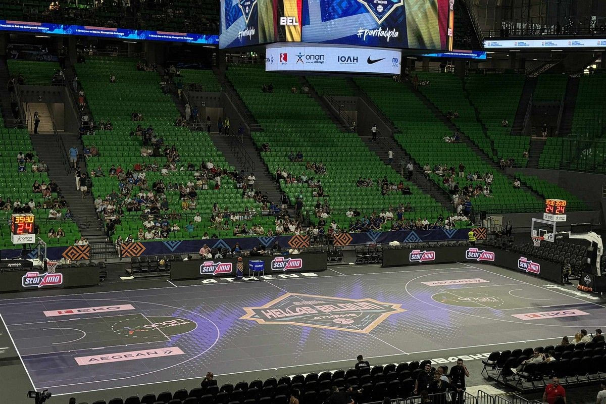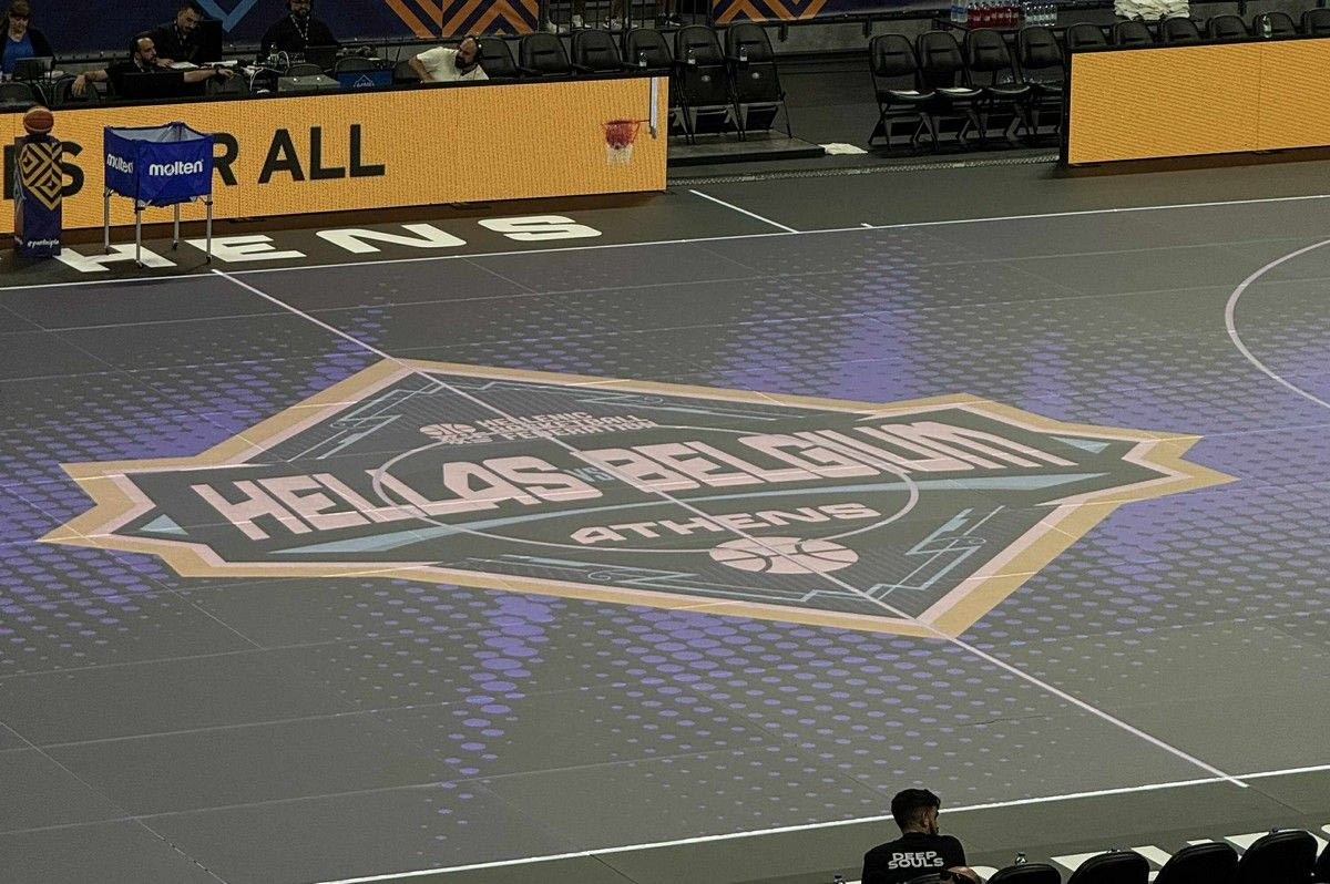 Ο υπερσύγχρονος αγωνιστικός χώρος του κλειστού των Ολυμπιακών Εγκαταστάσεων στο Μαρούσι διαμορφώθηκε για να φιλοξενήσει την Εθνική ομάδα, με τον φωτογραφικό φακό να απαθανατίζει το νέο λουκ του γηπέδου πριν από το τζάμπολ του φιλικού με το Βέλγιο (6/8, 20:00, ΕΡΤ1, Match Center από το SPORT24).