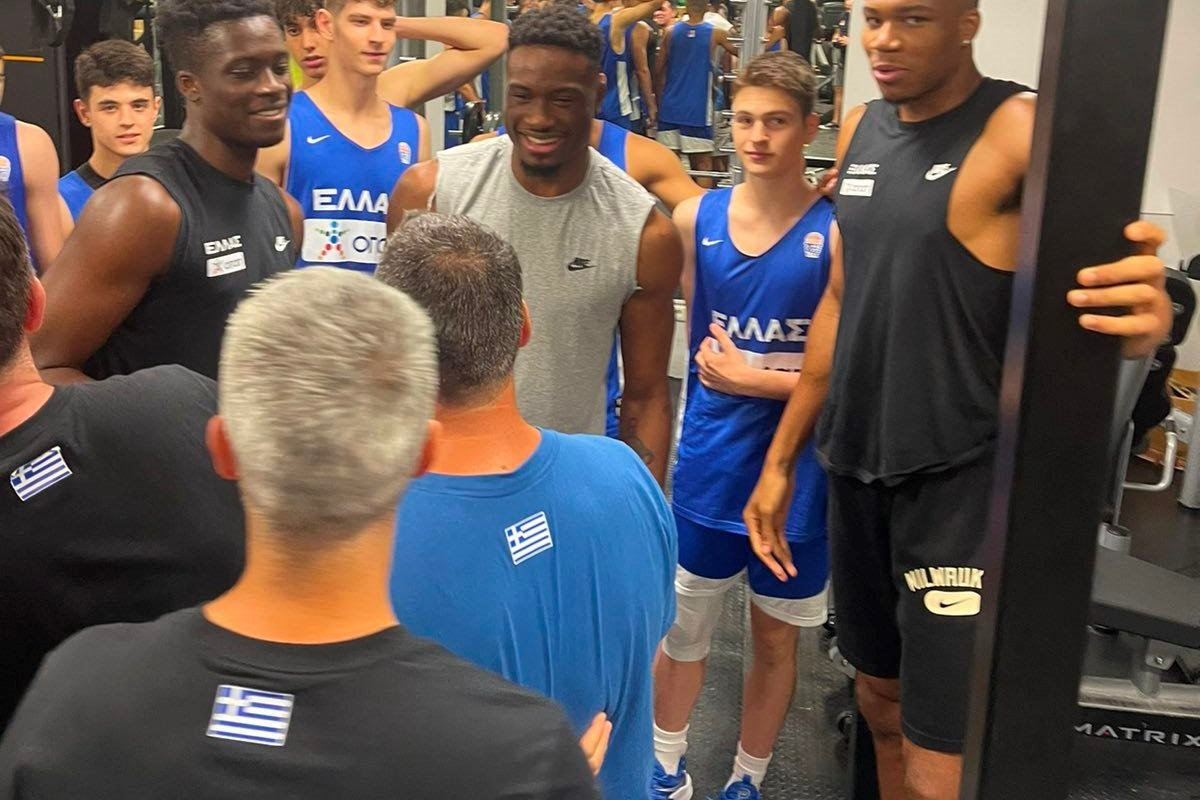 Μία ιδιαίτερη έκπληξη περίμενε τους παίκτες της Εθνικής Παίδων καθώς συνάντησαν τους Γιάννη, Θανάση και Άλεξ Αντετοκούνμπο στην προπόνησή τους στο ΟΑΚΑ.