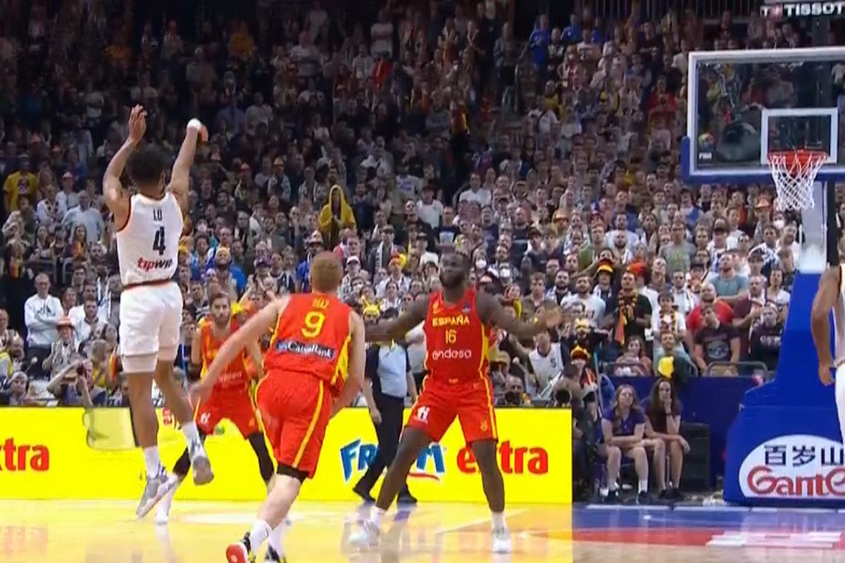 Το highlight της αναμέτρησης στο παιχνίδι της Γερμανίας με την Ισπανία ήρθε από νωρίς, με τον Μάοντο Λο να σκοράρει τρελό buzzer-beater τρίποντο από το logo στο φινάλε της πρώτης περιόδου.