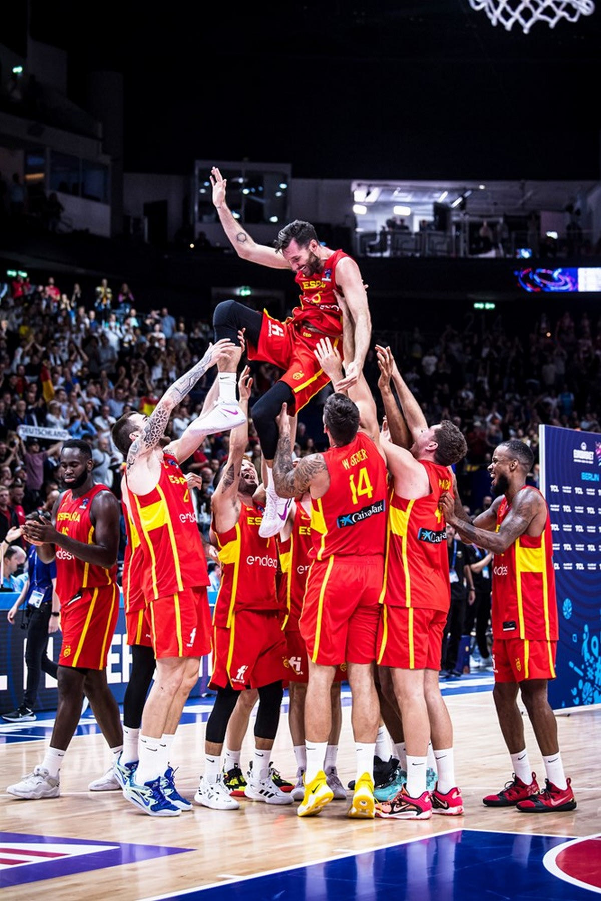 Η Ισπανία πανηγύρισε την μεγάλη πρόκριση στον τελικό του EuroBasket 2022, με τους παίκτες του Σκαριόλο να σηκώνουν στα χέρια τον Ρούντι Φερνάντεθ αποθεώνοντάς τον.
