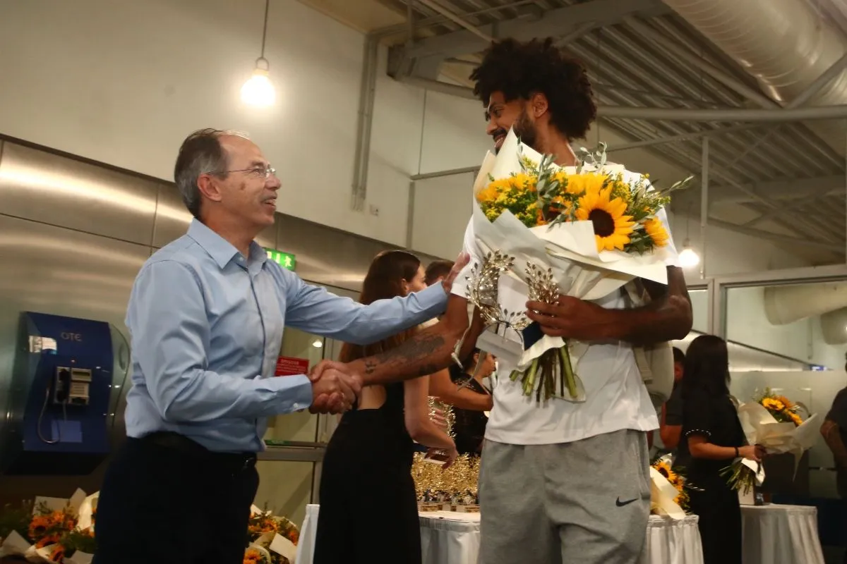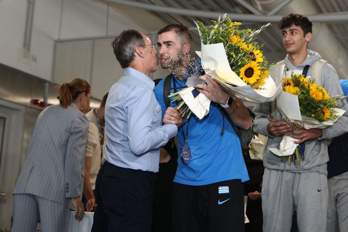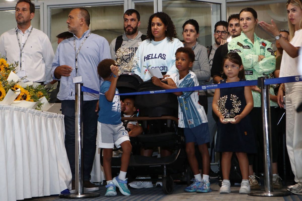 Τα μέλη της αποστολής παρέλαβαν τα δώρα και τις ανθοδέσμες τους, με τους ανθρώπους που επανέφεραν την χώρα μας στο βάθρο να τιμώνται.