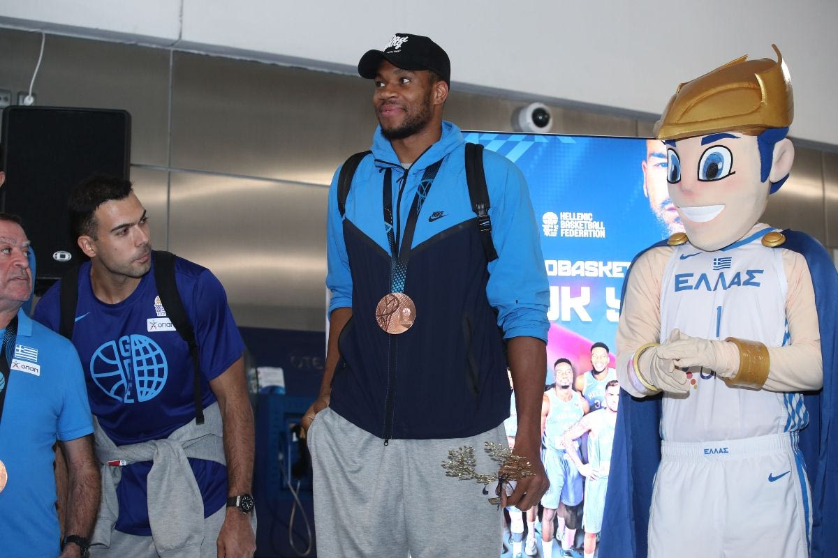 Η υποδοχή του Γιάννη Αντετοκούνμπο και του Κώστα Σλούκα στο Ελευθέριος Βενιζέλος