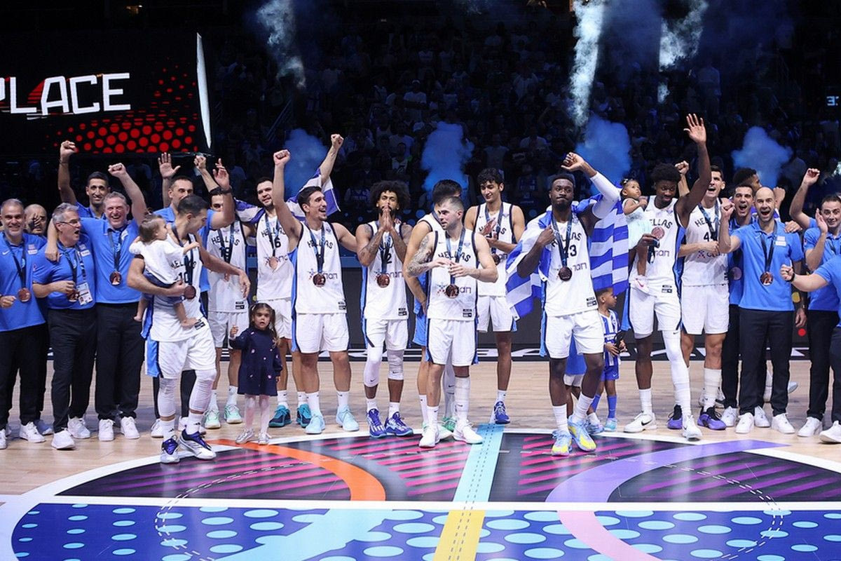 Η Ελλάδα επέστρεψε στο βάθρο των μεταλλίων, με τους διεθνείς και το τεχνικό επιτελείο της εθνικής ομάδας να παραλαμβάνουν τα χάλκινα μετάλλια τους μετά την νίκη με 92-89 στον μικρό τελικό του Eurobasket 2025 επί της Φινλανδίας.