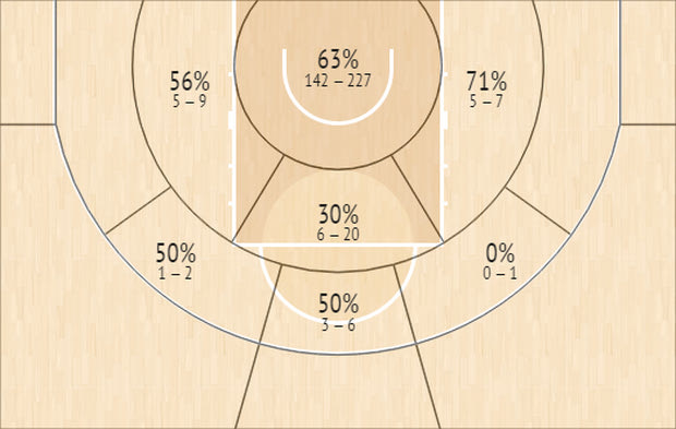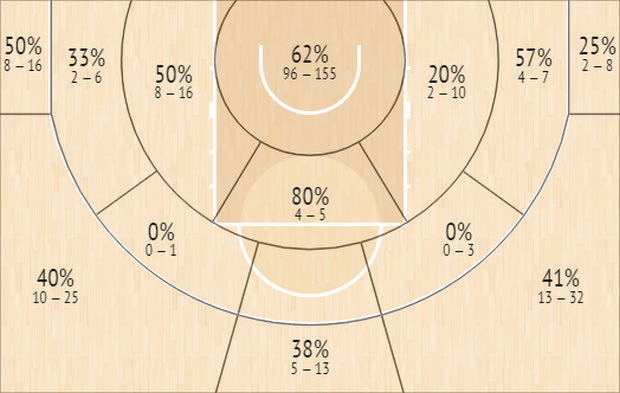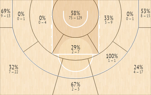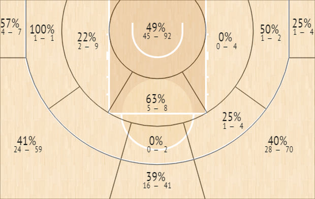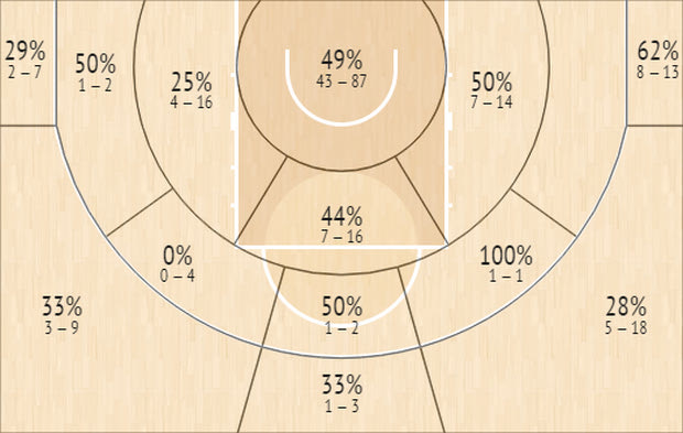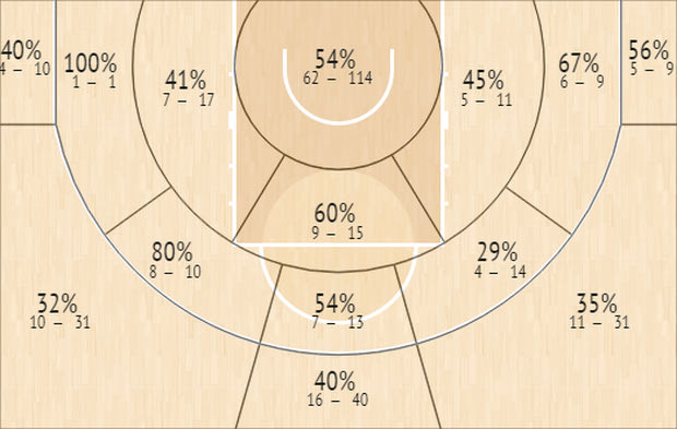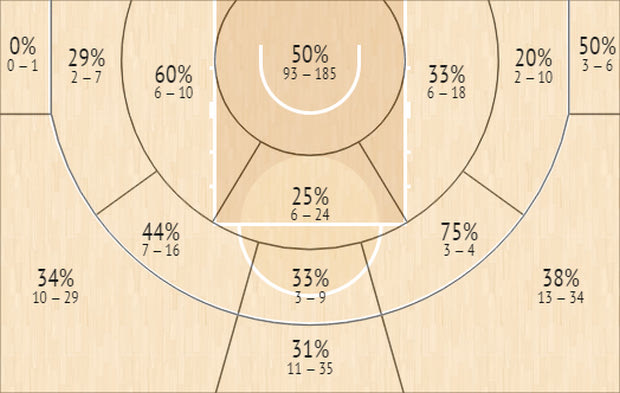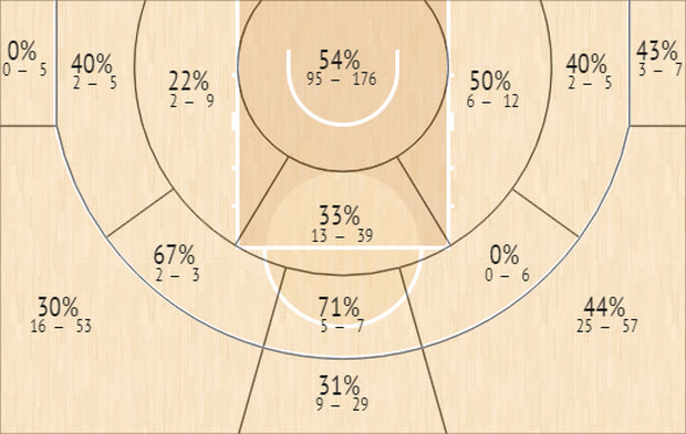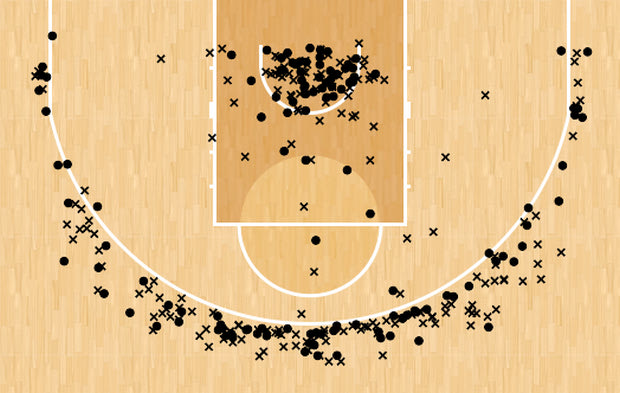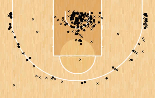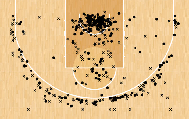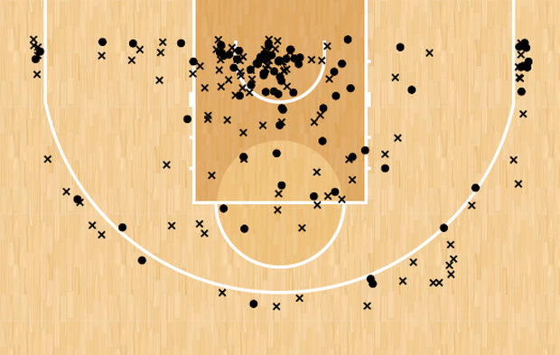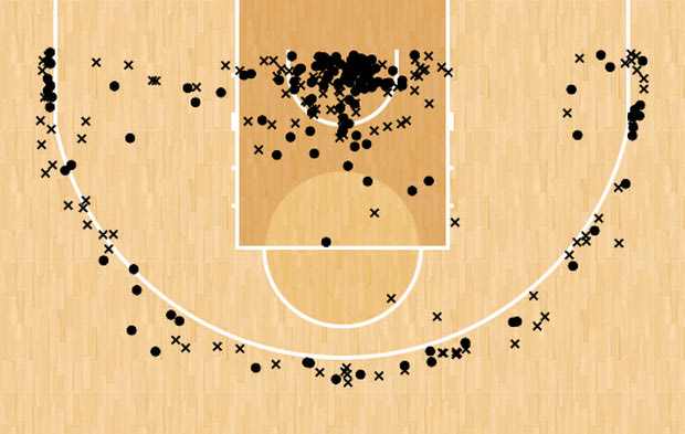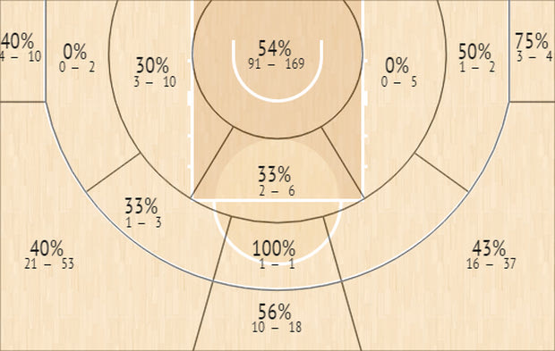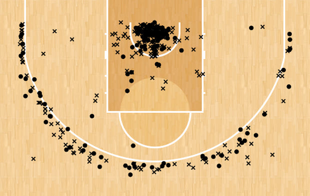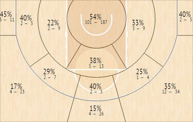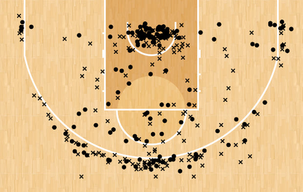 Το shotchart των παικτών που εκτέλεσαν απέναντι στον Έντι Ταβάρες: