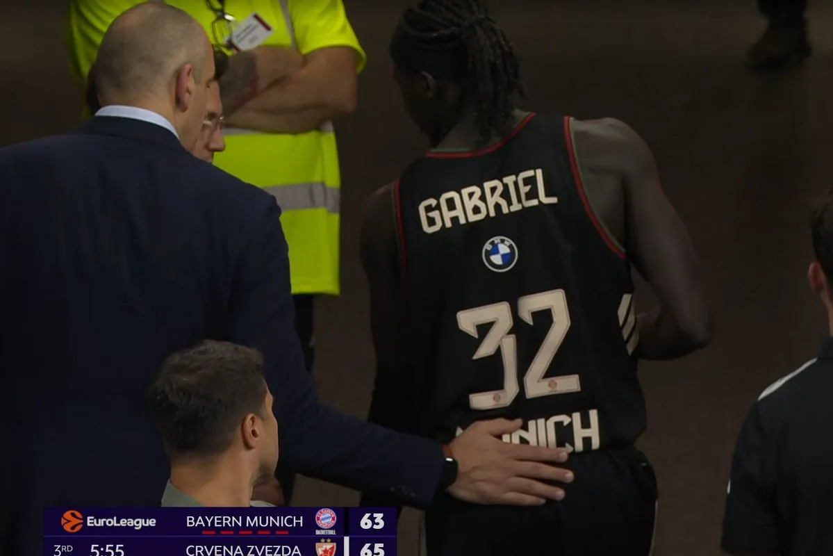Με πρόβλημα στον αριστερό ώμο αποχώρησε ο Γουένιεν Γκέιμπριελ στο 24ο λεπτό του αγώνα της Μπάγερν Μονάχου με τον Ερυθρό Αστέρα στη 2η αγωνιστική της EuroLeague.