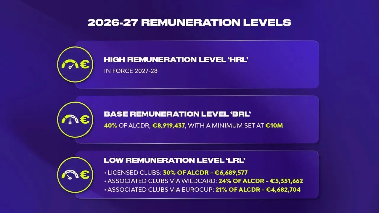 “Η Euroleague Basketball ανακοίνωσε επίσημα τα επίπεδα αμοιβών που θα εφαρμοστούν για την σεζόν 2026-27. Αυτή η σεζόν θα είναι η δεύτερη μεταβατική σεζόν στο πλαίσιο του νέου πλαισίου, καθώς τα Competitive Balance Standards (CBS), ένα ολοκληρωμένο σύνολο κανονισμών που έχουν σχεδιαστεί για να βελτιώσουν το τρέχον FSFPR, συνεχίζουν να εφαρμόζονται σταδιακά πριν από την πλήρη εφαρμογή τους στην σεζόν 2027-28.