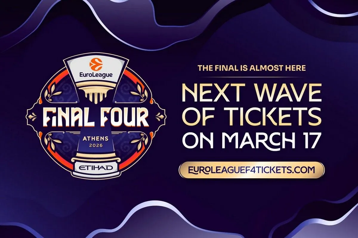 “Ο δρόμος προς το Final Four της EuroLeague Athens του 2026, που παρουσιάζεται από την Etihad, συνεχίζεται με πρωτοφανή παγκόσμια ζήτηση, καθώς η πώληση εισιτηρίων εισέρχεται στην τρίτη δημόσια φάση της στις 17 Μαρτίου στις 10:00 CET.