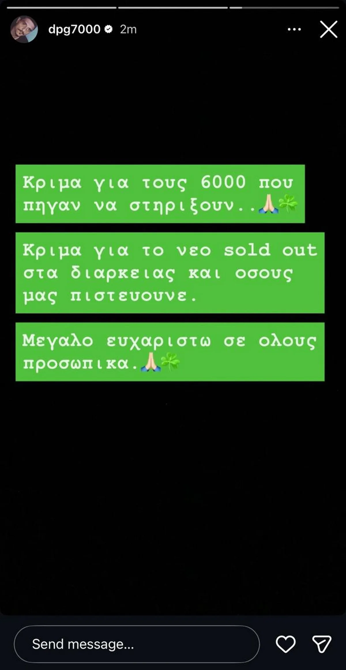 “Κρίμα για τους 6000 που πήγαν να στηρίξουν. Κρίμα για το νέο sold-out στα διαρκείας και όσους μας πιστεύουν. Μεγάλο ευχαριστώ σε όλους”.