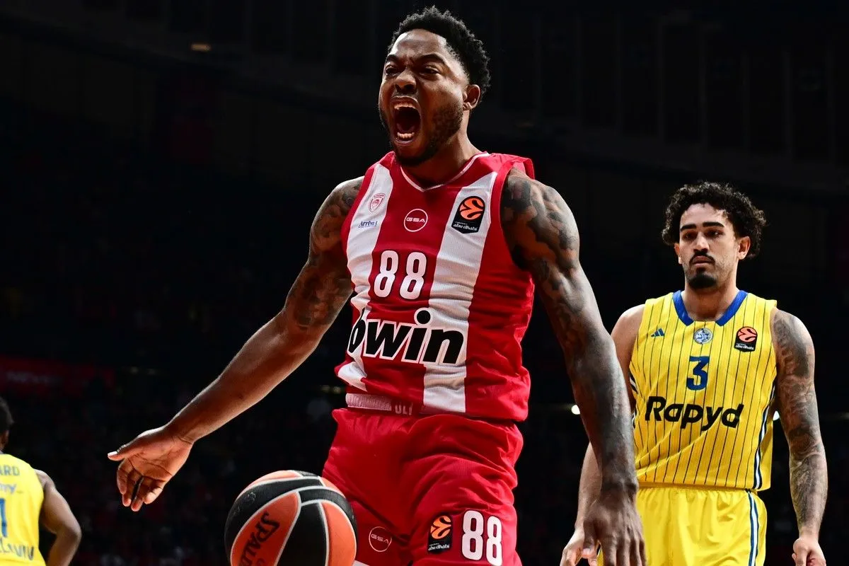 Στο 14-8 ανέβηκαν οι Πειραιώτες, που έχουν αγώνα λιγότερο σε σχέση με τους ανταγωνιστές τους, αλλά γλυκοκοιτάζουν πια την πρώτη τετράδα και το πλεονέκτημα έδρας στα playoffs της EuroLeague.