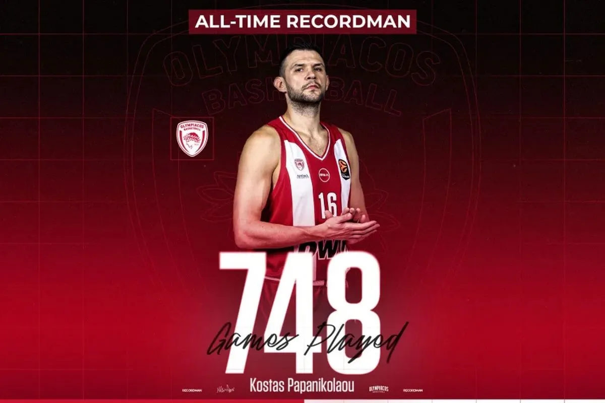 Ιστορική στιγμή για τον Κώστα Παπανικολάου, που έφτασε στις 748 συμμετοχές με τη φανέλα του Ολυμπιακού σε όλες τις διοργανώσεις και εκθρόνισε τον Γιώργο Πρίντεζη.