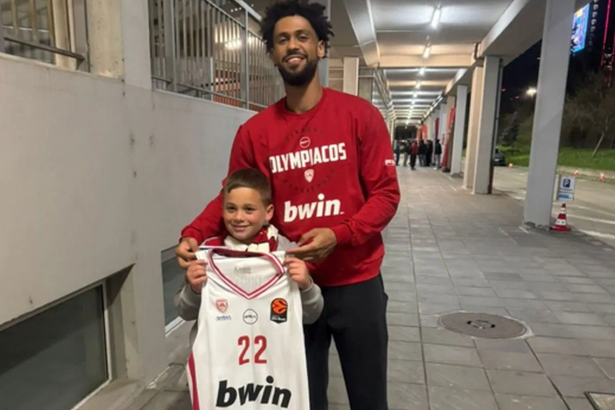 Ο γκαρντ του Ολυμπιακού δεν χάλασε το χατίρι στον νεαρό φίλαθλο και του χάρισε μετά τον αγώνα τη φανέλα με την οποία αγωνίστηκε, σε μία πολύ γλυκιά κίνηση.