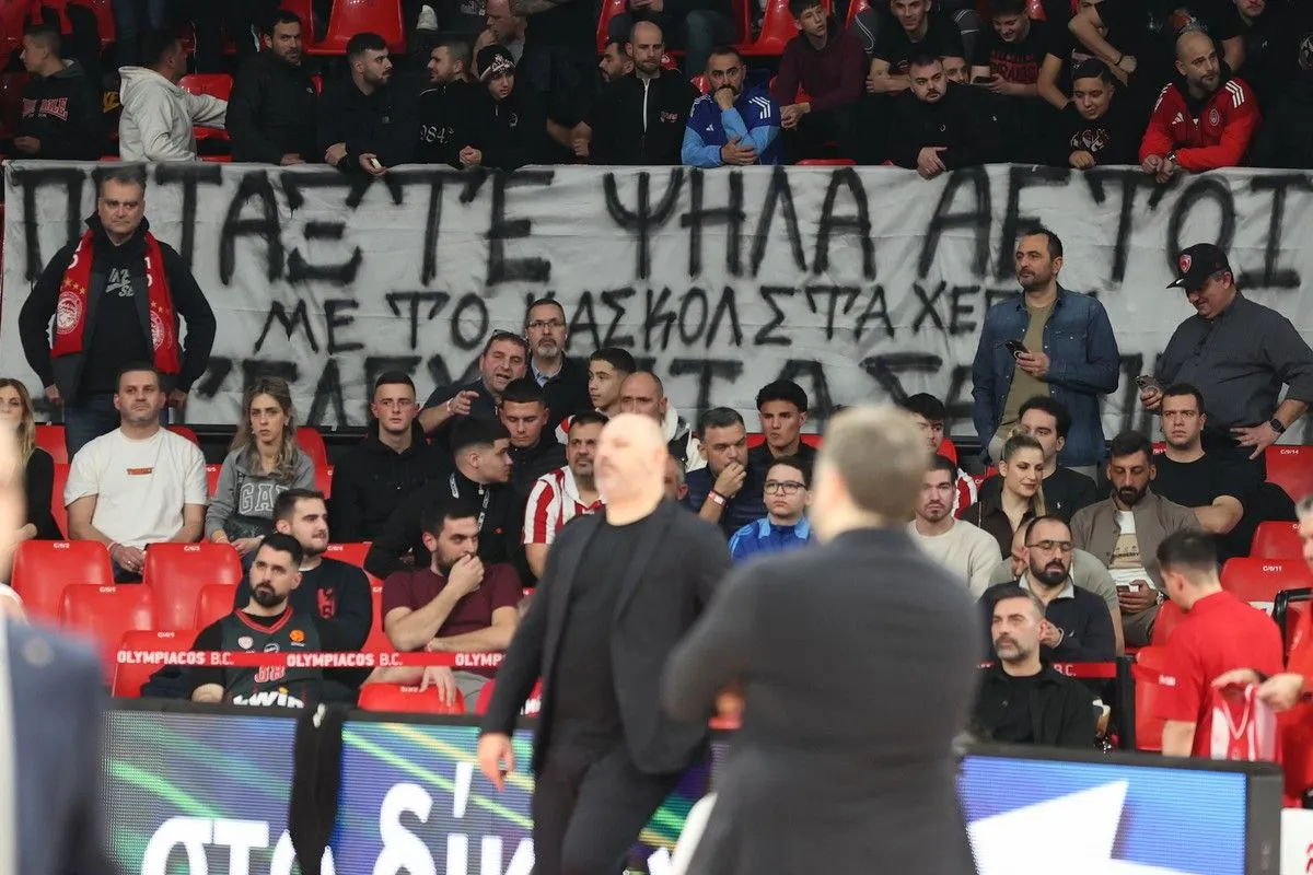 Ολυμπιακός – Μπαρτσελόνα: Το πανό των ερυθρολεύκων για τα επτά θύματα του ατυχήματος της Ρουμανίας