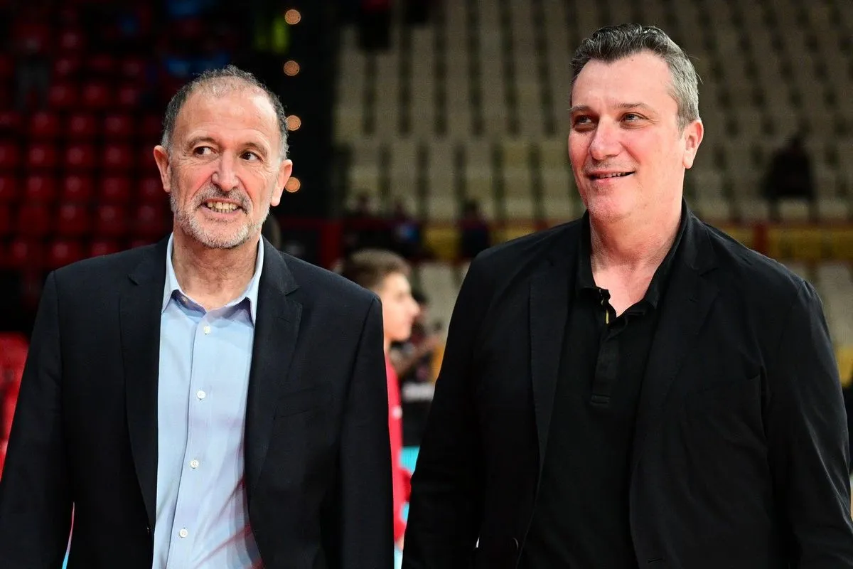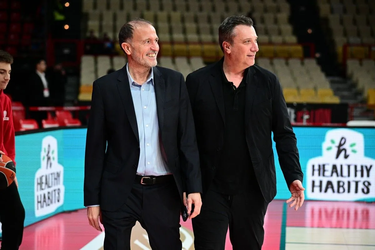 Ο CEO της EuroLeague, Τσους Μπουένο και ο Γενικός Διευθυντής της ΚΑΕ Ολυμπιακός, Νίκος Λεπενιώτης, είχαν τετ α τετ στο Στάδιο Ειρήνης και Φιλίας πριν το ντέρμπι της 30ής αγωνιστικής της EuroLeague.