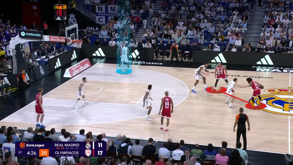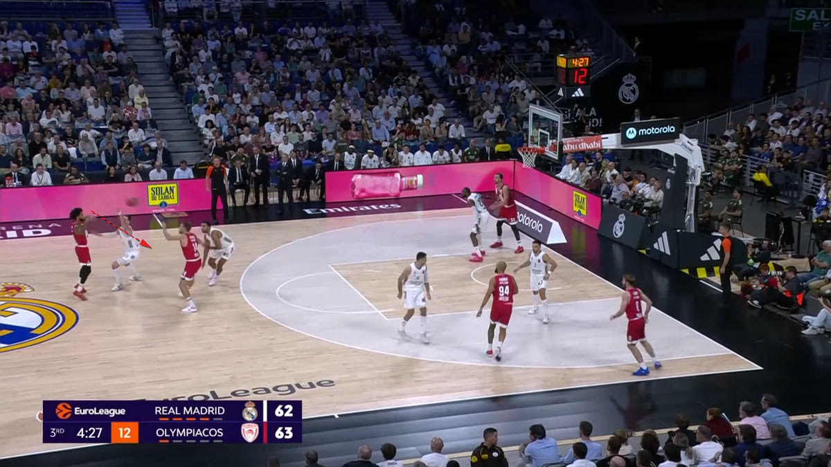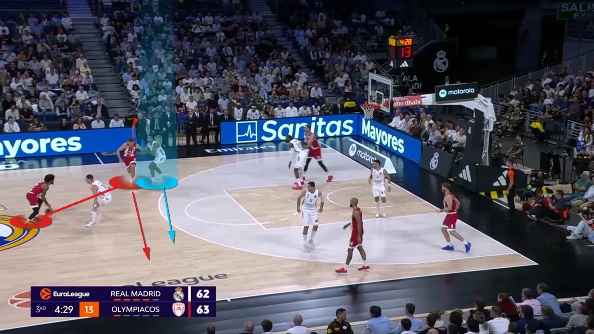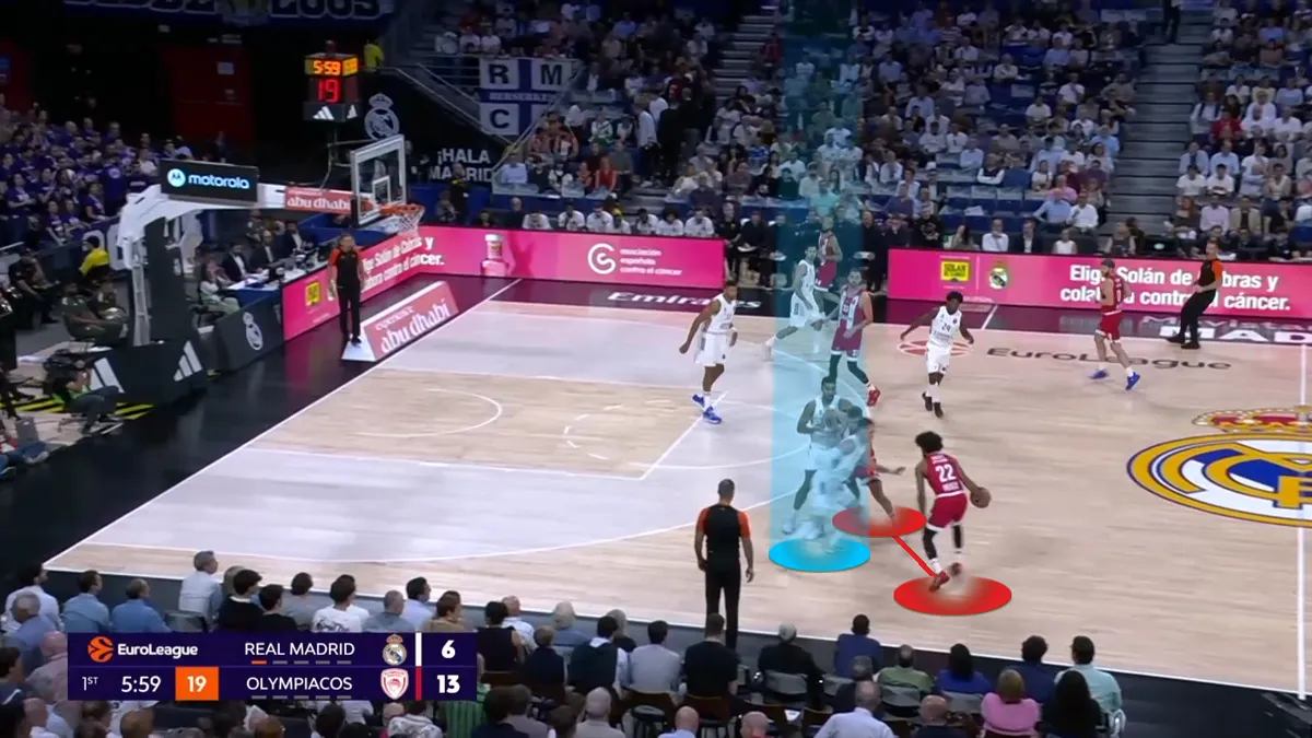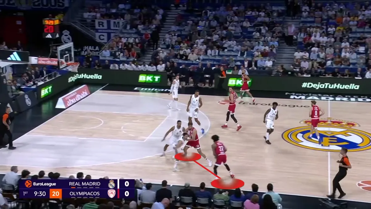 Κάποιος που είδε αυτή τη φάση είναι πιθανό να σκέφτηκε ότι απλώς έγινε λάθος από την άμυνα της Ρεάλ και δεν βγήκε επιθετικά στον Ντόρσεϊ επειδή το Pick and Roll στήθηκε στα 9 μέτρα. Λίγες φάσεις αργότερα, όμως, έγινε πάλι το ίδιο: