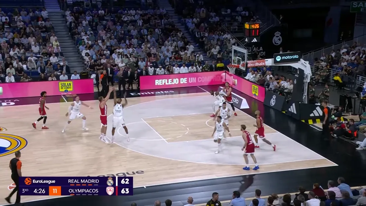 Η Ρεάλ βέβαια δεν έμεινε εκεί. Στο ξεκίνημα της 3ης περιόδου ήταν ξεκάθαρο πως η εντολή ήταν να χτυπηθεί ο Τάιλερ Ντόρσεϊ στην άμυνα, τόσο επειδή είναι μέτριος αμυντικός, όσο και για να κουραστεί/φθαρεί. Αυτό έκανε παράγοντα στο ματς τον Αλμπέρτο Αμπάλδε (3 πόντοι, αλλά και 5 ασίστ, που έδωσαν άλλους 12 πόντους στην ομάδα του).