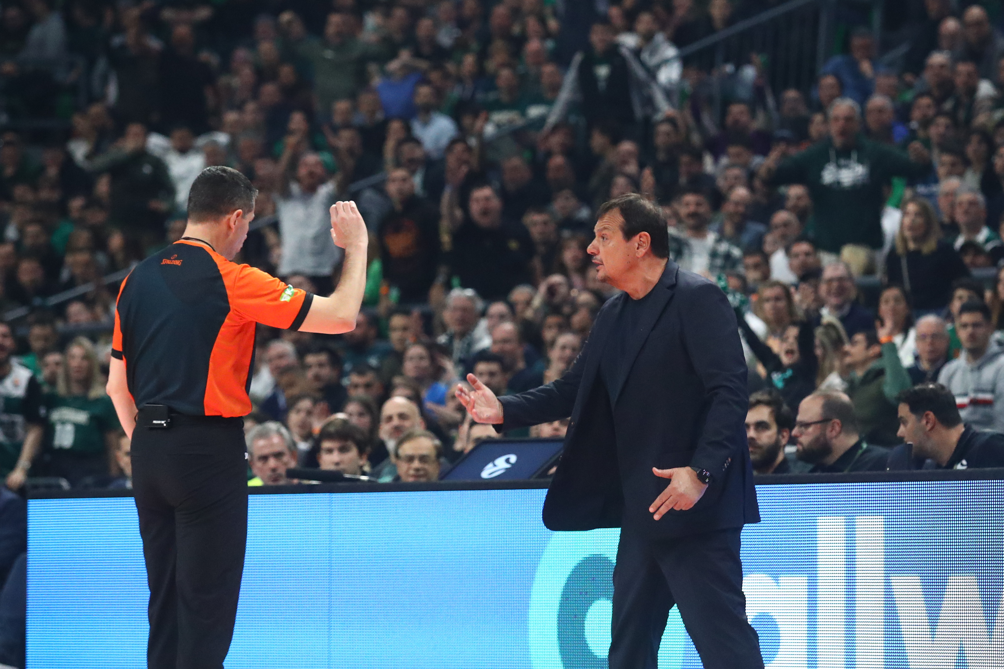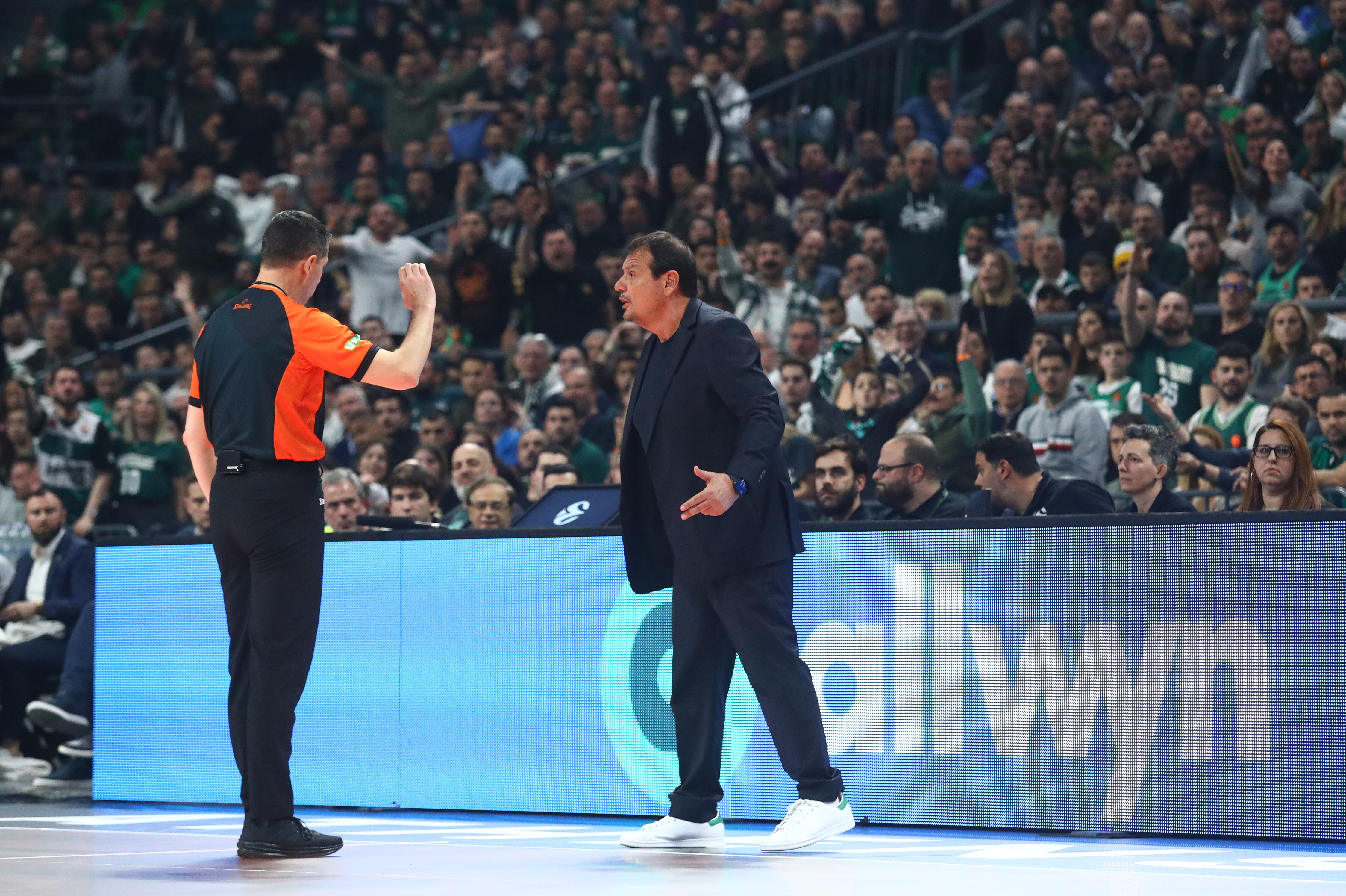 Στις αρχές του δευτέρου δεκαλέπτου, ο προπονητής των γηπεδούχων Εργκίν Αταμάν διαμαρτυρήθηκε έντονα στον διαιτητή ζητώντας φάουλ, σε μία φάση στην οποία δεν καταλογίστηκε παράβαση πάνω στον Κώστα Σλούκα.