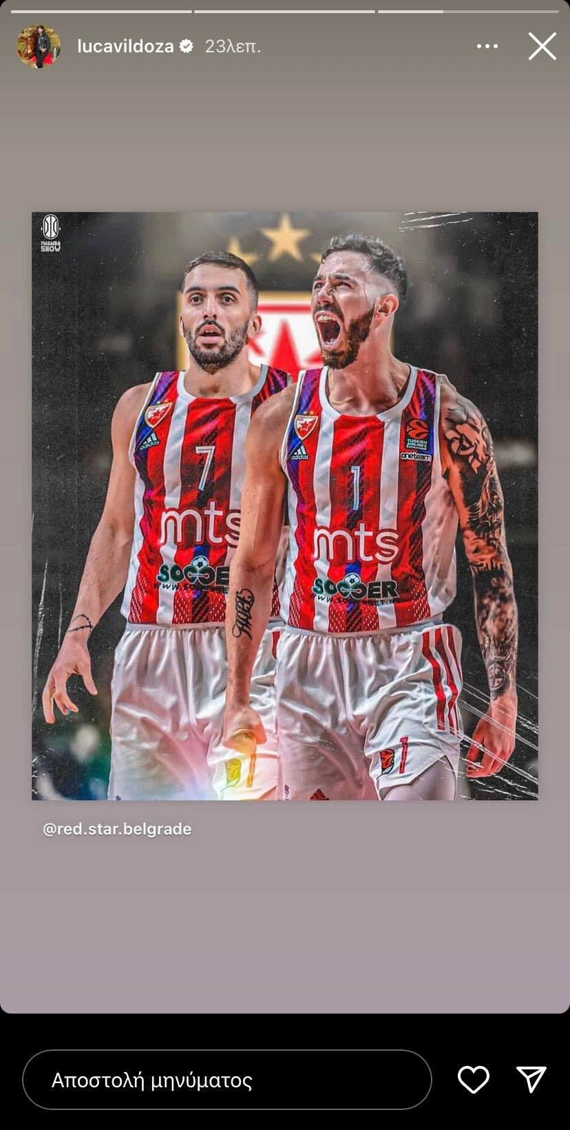 Ο Λούκα Βιλντόσα δεν κρατιέται να γίνει συμπαίκτης με τον Φακούντο Καμπάτσο και προαναγγέλλει τη μεταγραφή του συμπατριώτη του στον Ερυθρό Αστέρα μέσα από ανάρτηση στο Instagram.