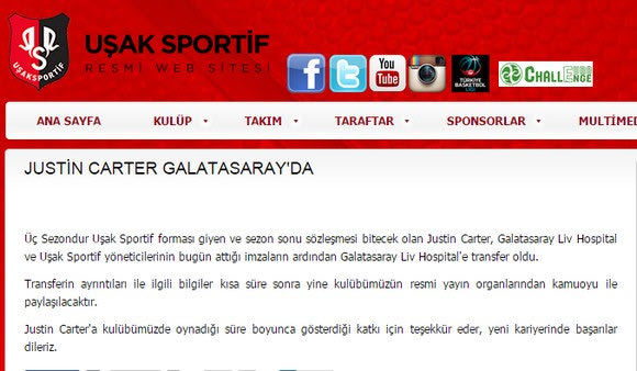 Ο Εργκίν Αταμάν ζήτησε τον Μικαέλ Ζελαμπάλ ή τον Τζάστιν Κάρτερ. Ο πρώτος ενημέρωσε πως δεν ενδιαφέρεται και έτσι ο δεύτερος έγινε ο στόχος της Γαλατασαράι, αντίπαλο του Παναθηναϊκού στο ΤΟΡ16 (video).