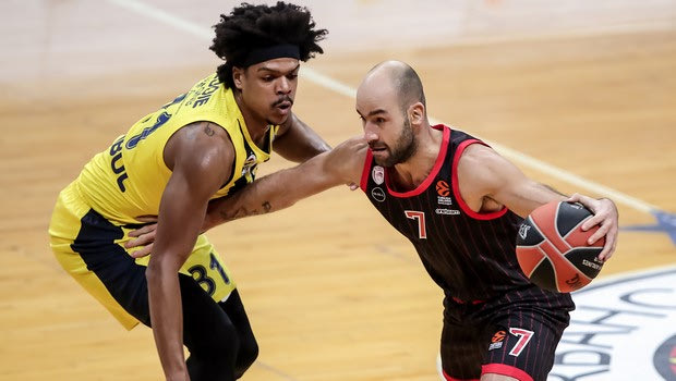 Με 3/4 δίποντα και 7/11 τρίποντα έκλεισε ο Ολυμπιακός το πρώτο δεκάλεπτο, την ώρα που η Φενέρμπαχτσε μετρούσε 9/13 δίποντα και ακόμη 7/8 στη δεύτερη περίοδο για το 73% στο πρώτο εικοσάλεπτο. Οι Πειραιώτες δεν εξαργύρωσαν την εντυπωσιακή τους εμφάνιση από την περιφέρεια, δεν πίεσαν τους γηπεδούχους που είχαν 14 ασίστ για τέσσερα λάθη στο ημίχρονο, ενώ στο φινάλε του ματς είχαν εκτελέσει 32 τρίποντα και 22 δίποντα απέναντι σε μια ομάδα που τους χτυπούσε συνεχώς στη ρακέτα με τον Γιαν Βέσελι να έχει το απόλυτο 8/8 στον χρόνο που αγωνίστηκε. Η Φενέρμπαχτσε σκόραρε 21 πόντους από τα 14 λάθη των ερυθρόλευκων, που με τη σειρά τους έβαλαν μόλις επτά από τα λάθη των γηπεδούχων.