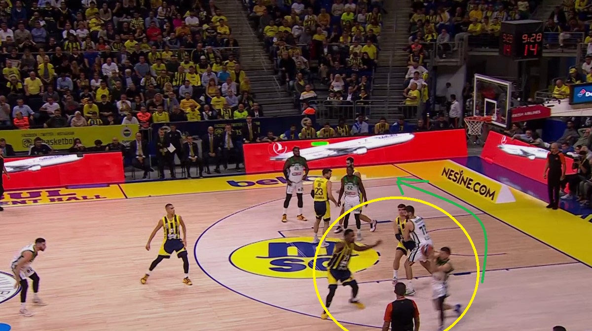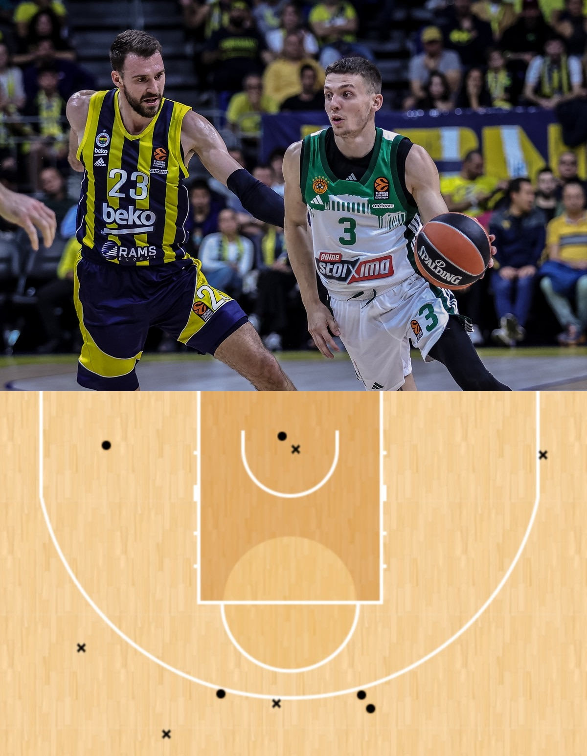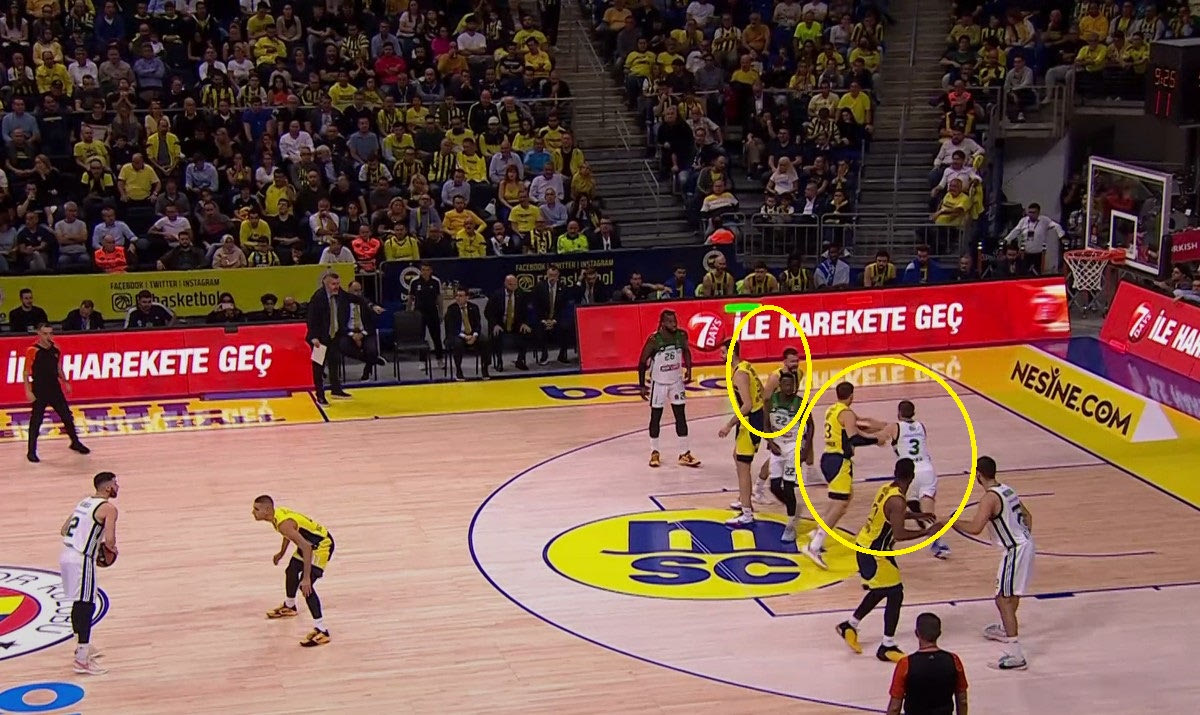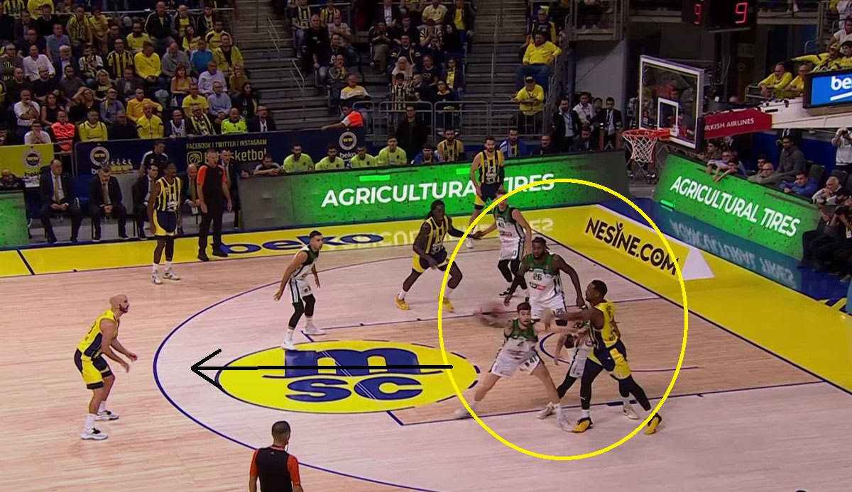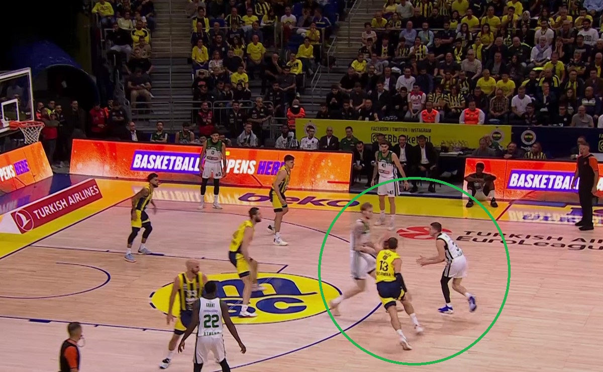 Ήταν σαφές ότι – με την εικόνα που είχε ο Παναθηναϊκός – η Φενέρ πρακτικά έπρεπε να ανησυχεί μόνο για τον Αμερικανό γκαρντ και την κίνησή του μακριά από την μπάλα. Η τουρκική ομάδα όμως είναι μία από τις κορυφαίες στην άμυνα μακριά από την μπάλα – αν όχι η κορυφαία – στην Ευρώπη, ειδικά όταν είναι μαζί στο παρκέ έστω δύο εκ των των Καλάθη, Πιέρ, Ντέιβις (που σπάνε τα σκριν εξαιρετικά ή αλλάζουν μαρκάρισμα).