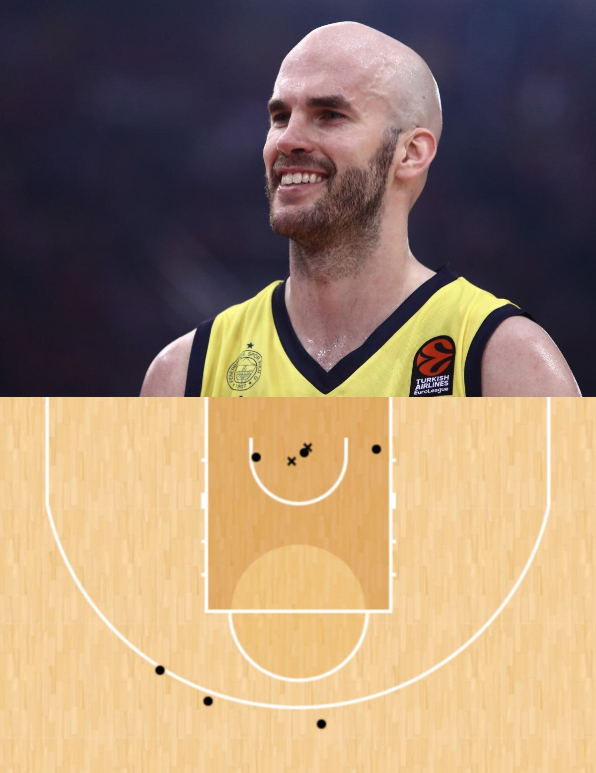 Στην πραγματικότητα όμως ευστοχησε σε 6 από τις 7 επιθέσεις που εκδήλωσε, αφού σε μία φάση ο Μότλι πήρε το επιθετικό ριμπάουντ έπειτα από δικό του άστοχο σουτ και σκόραρε. Ιδού και το Shot Chart της Φενέρ σε αυτά τα 3 λεπτά και 44 δευτερόλεπτα: