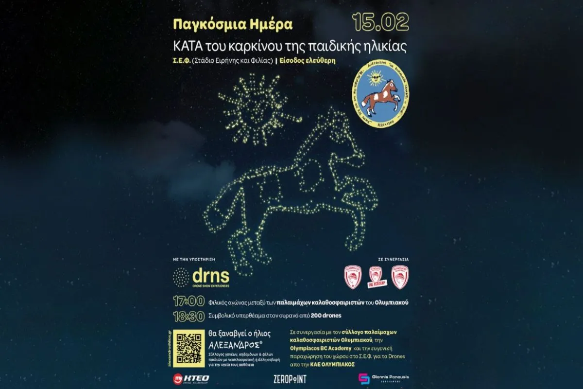 Μετά τη λήξη της αναμέτρησης, θα ακολουθήσει ένα συμβολικό υπερθέαμα, καθώς 200 drones θα φωτίσουν τον ουρανό πάνω από το ΣΕΦ, μεταφέροντας μηνύματα δύναμης, ελπίδας και συμπαράστασης στα παιδιά που δίνουν τη δική τους μάχη στα παιδοογκολογικά νοσοκομεία της χώρας.