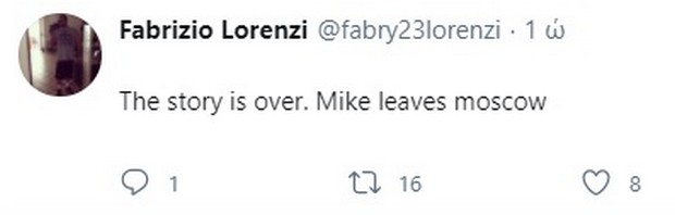 Φίλος του Αμερικανού, ο Φαμπρίτσιο Λορέντζι που εργάστηκε ως team manager της Ομέγκνα, της πρώτης ομάδας του Τζέιμς στην Ευρώπη, έγραψε στο Twitter πως “η ιστορία τελείωσε. Ο Μάικ αποχωρεί από τη Μόσχα“, με αποτέλεσμα να επιβεβαιώνει ουσιαστικά αυτό που ακουγόταν ως φήμη εδώ και ημέρες. Πως το γυαλί ανάμεσα στον Τζέιμς και την ΤΣΣΚΑ ράγισε οριστικά.