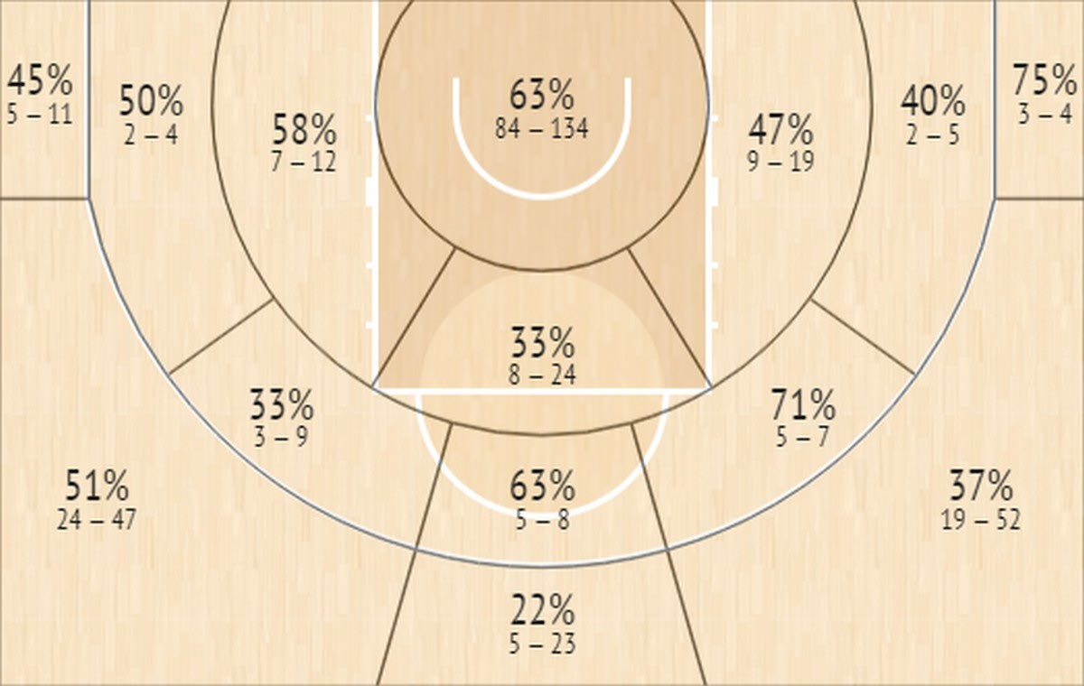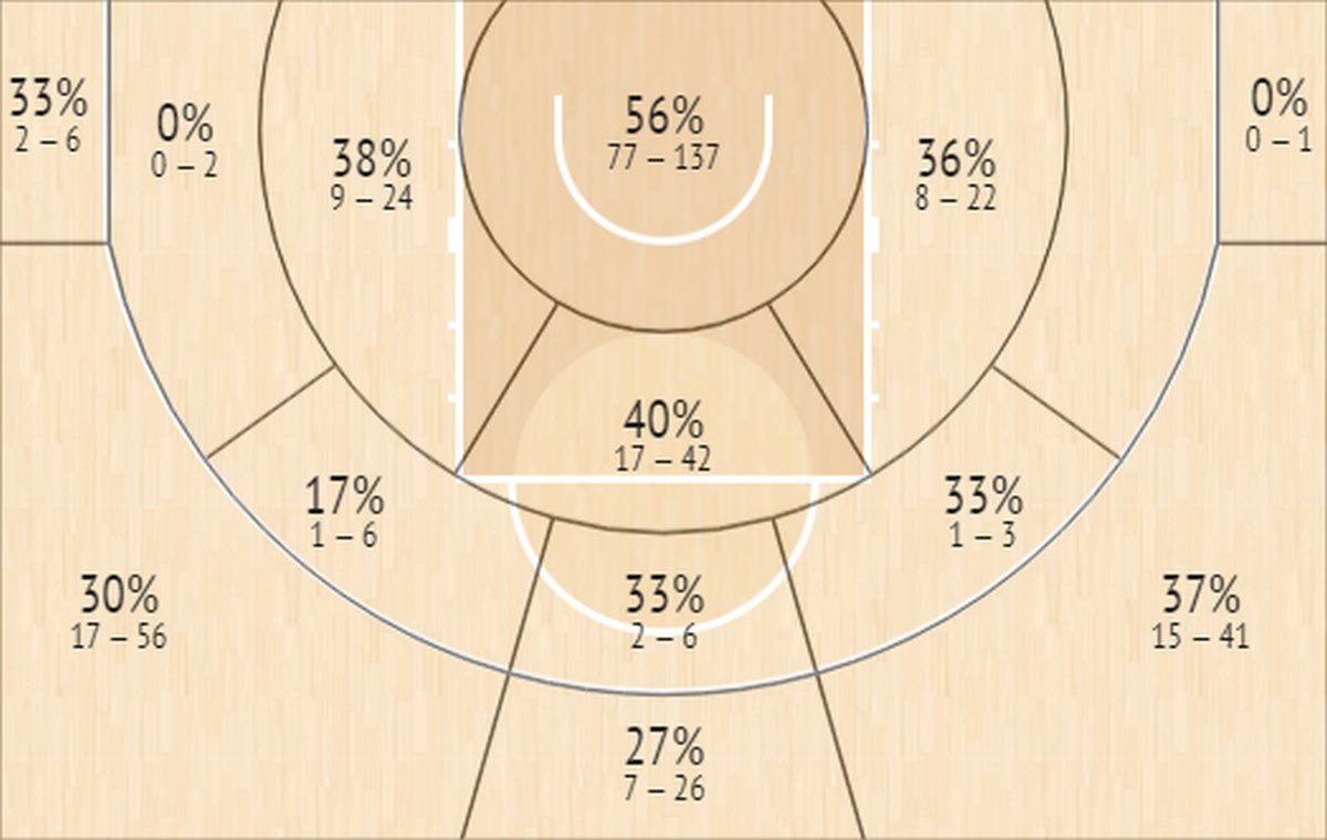 Post Up (παιχνίδι με πλάτη): 7.4 κατοχές – 5.4 πόντοι (0.74 ανά κατοχή)