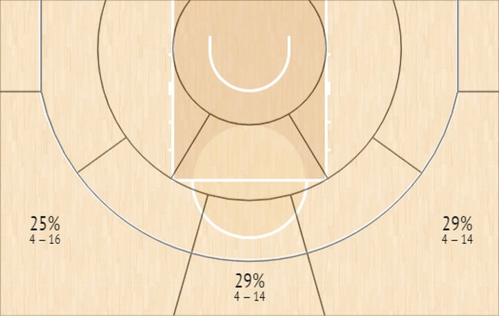 Γιατί όμως δεν μπορεί να χαρακτηριστεί ως η τέλεια επίθεση; Πολύ απλά γιατί πρόκειται για μια επιλογή στην οποία είχε ποσοστό ευστοχίας που έφτανε στο 23.1% σε παρόμοιες καταστάσεις τη φετινή σεζόν στην EuroLeague. Σύμφωνοι, το επιθετικό ταλέντο, το απρόβλεπτο των κινήσεων και η ικανότητα στην εκτέλεση είναι στοιχεία που χαρακτηρίζουν τον Βασίλιε Μίτσιτς, εν προκειμένω όμως ο τρόπος με τον οποίο επιτέθηκε δεν είναι ο πλέον αποτελεσματικός για εκείνον.