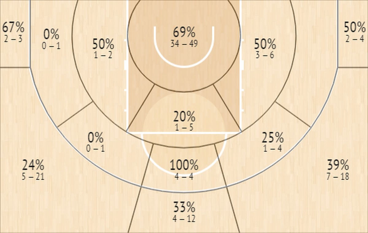 Post Up (παιχνίδι με πλάτη): 6.1 κατοχές – 5.6 πόντοι (0.93 ανά κατοχή)