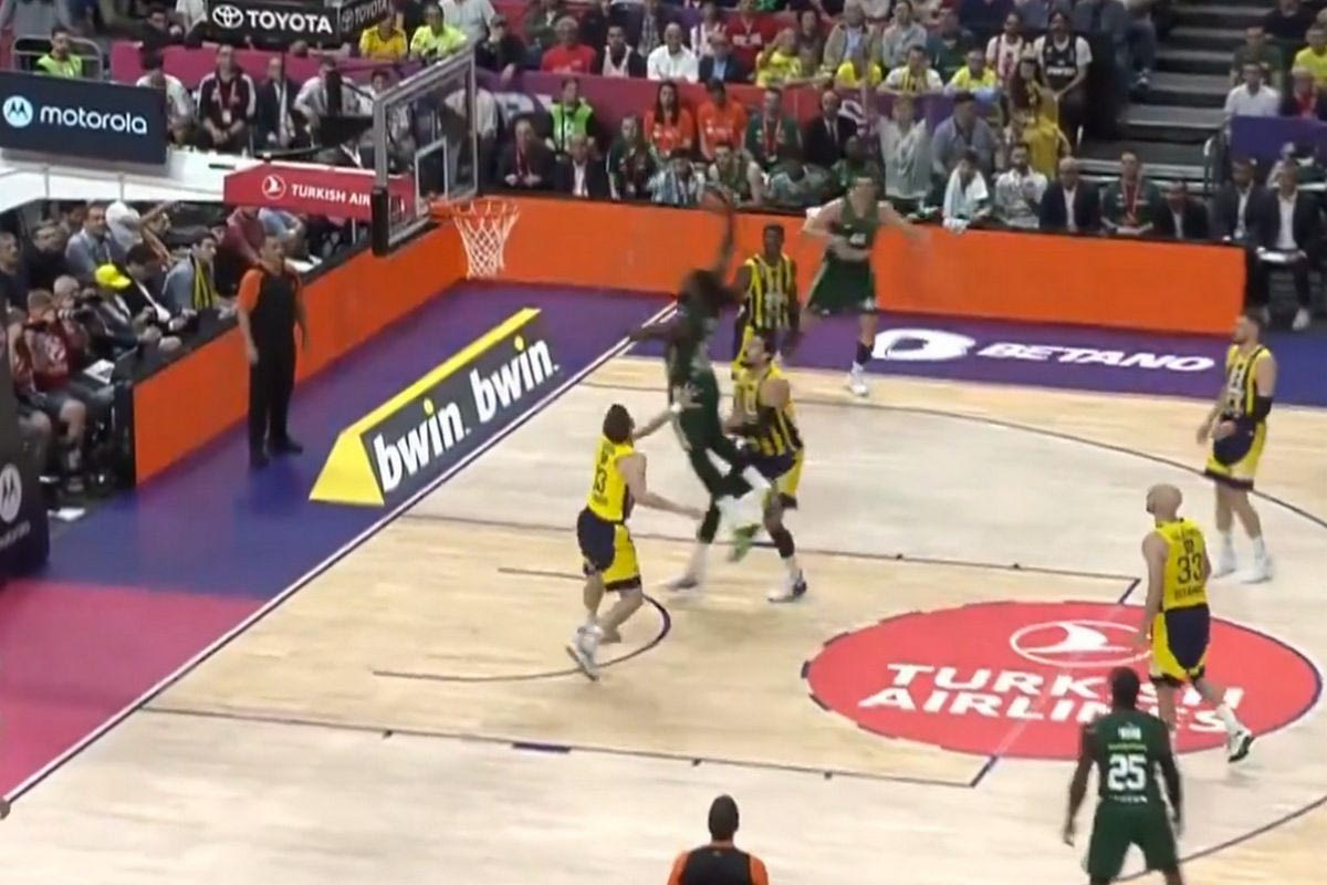 Το δυναμικό κάρφωμα του Ματίας Λεσόρ στην πρώτη περίοδο του μεγάλου ημιτελικού ανάμεσα σε Παναθηναϊκό AKTOR και Φενέρμπαχτσε για το Final Four της EuroLeague.