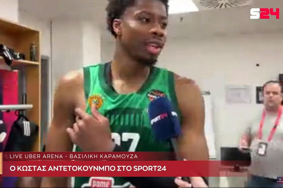 Ο Κώστας Αντετοκούνμπο από τα αποδυτήρια της UBER Arena μίλησε στη Game Night για τη συνέντευξη που του πήρε ο αδερφός του Γιάννης αλλά και για τον τελικό της Κυριακής.