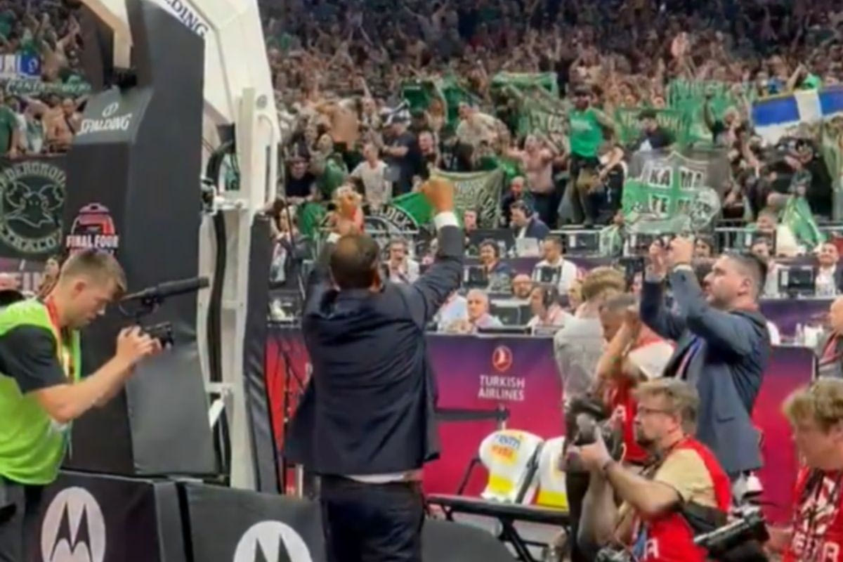Ο Εργκίν Αταμάν πανηγύρισε με τον κόσμο των πρασίνων, μετά την πρόκριση του Παναθηναϊκού AKTOR στον τελικό, υψώνοντας τις γροθιές του.