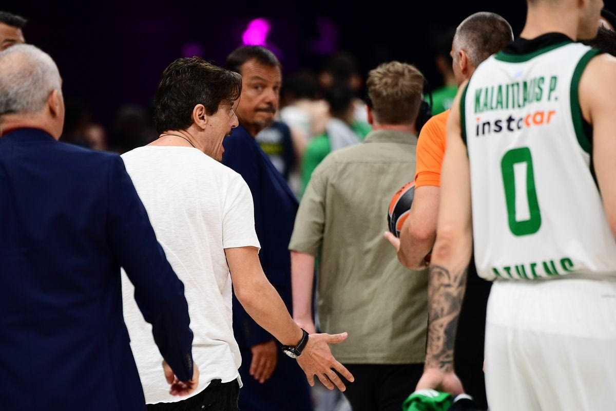 Έξαλλος ήταν ο Δημήτρης Γιαννακόπουλος με τους διαιτητές στο τέλος του ημιχρόνου του ημιτελικού του Final Four 2025 ανάμεσα στον Παναθηναϊκό AKTOR και τη Φενέρμπαχτσε, με τον ιδιοκτήτη της “πράσινης” ΚΑΕ να εισέρχεται στο παρκέ και τους ανθρώπους του “τριφυλλιού” να τον συγκρατούν.