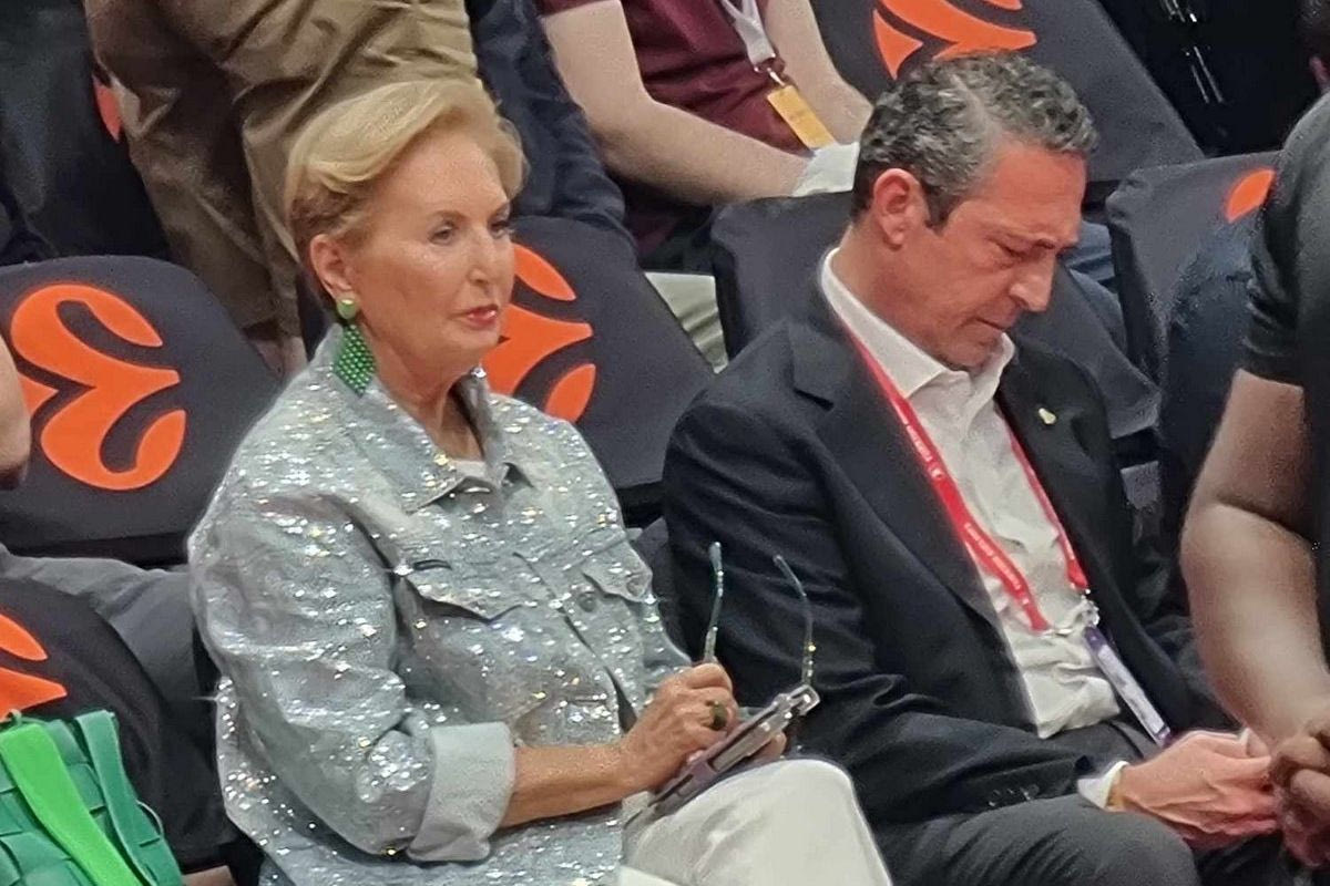 Η μητέρα του Δημήτρη Γιαννακόπουλου στις θέσεις courtside της Etihad Arena μαζί με τον πρόεδρο της Φενέρμπαχτσε, Αλί Κοτς, για να παρακολουθήσουν τον ημιτελικό της EuroLeague.