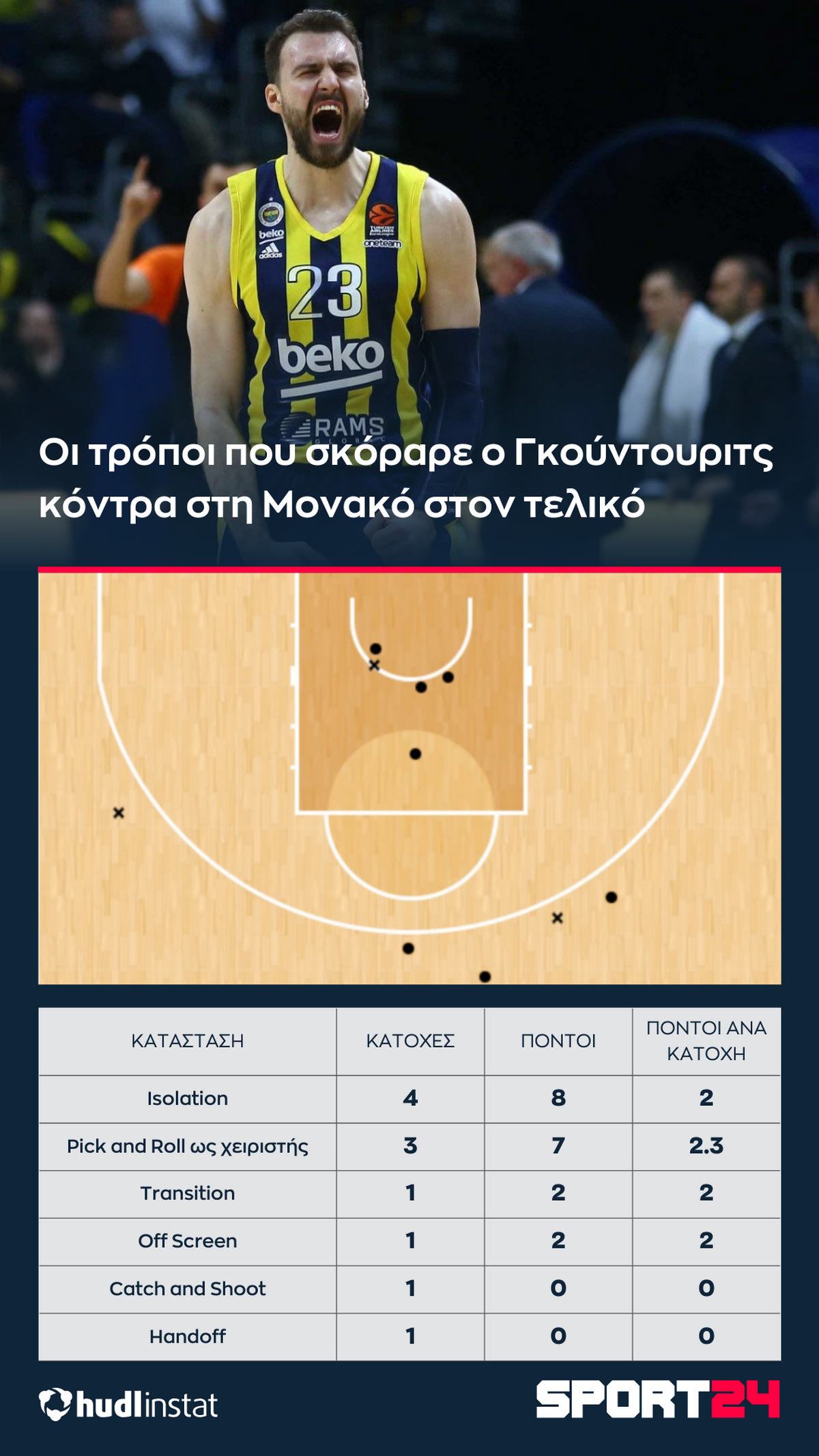 Στον τελικό με τη Μονακό ήταν όμως η βραδιά του Σέρβου. Ο Γκούντουριτς πήρε την μπάλα όταν χρειάστηκε η Φενέρ και έβαλε μεγάλα σουτ, κλειδώνοντας την νίκη. Είναι τέτοια σουτ που ανεβάζουν status έναν παίκτη.
