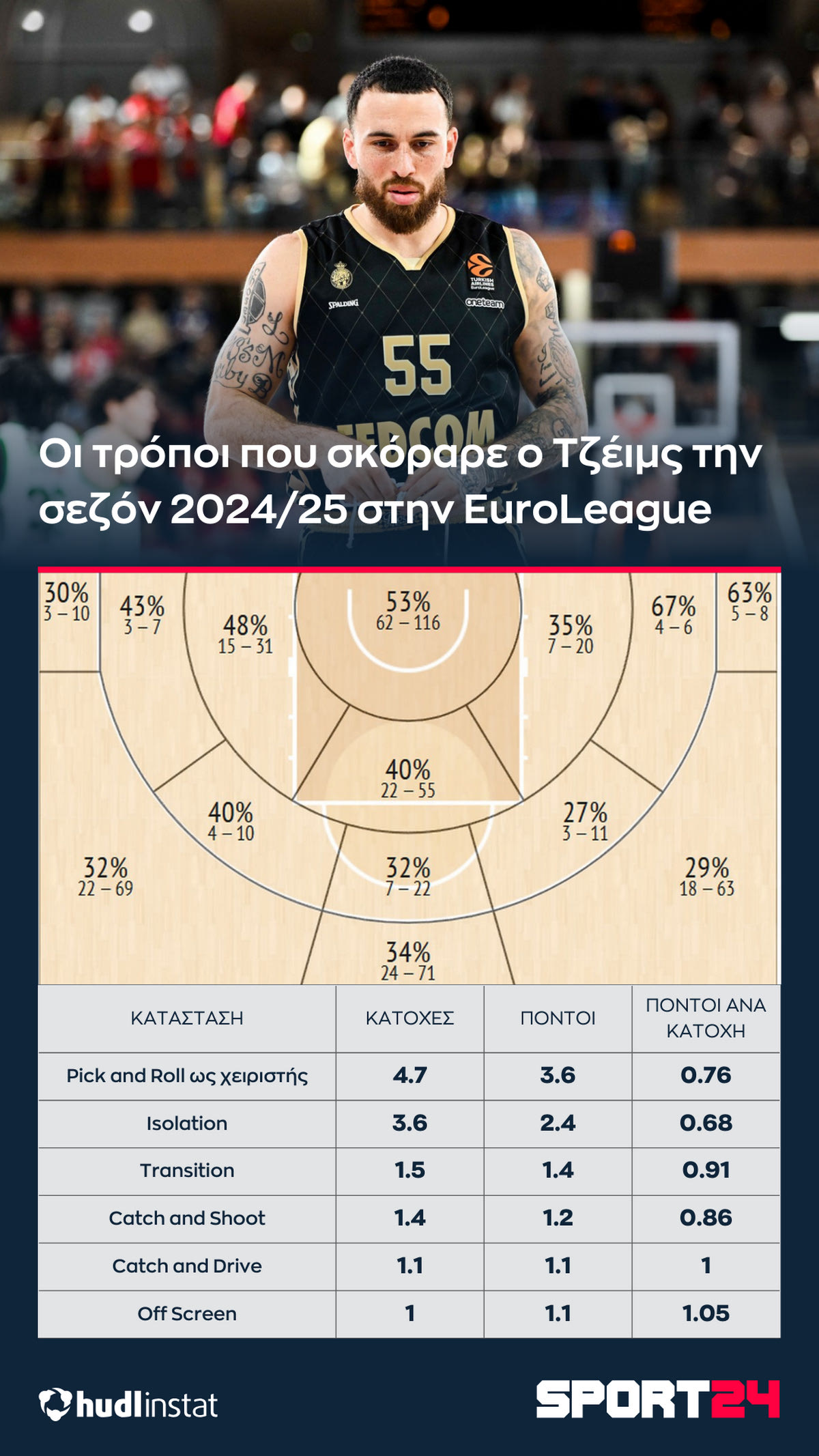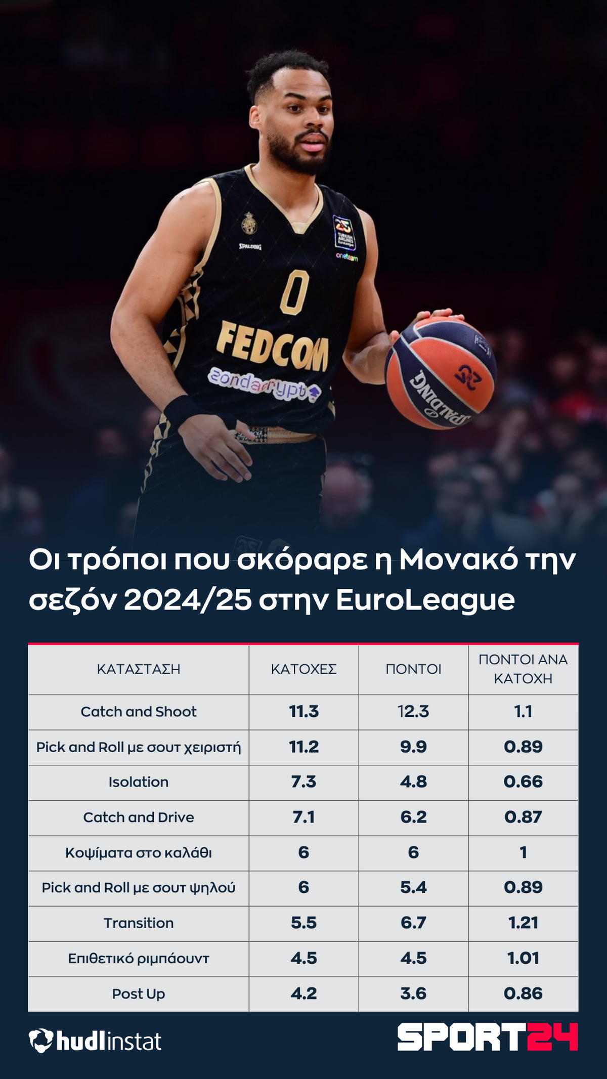Το SPORT24 αναλύει με την βοήθεια του Hudl Instat το προφίλ της Μονακό στην EuroLeague.