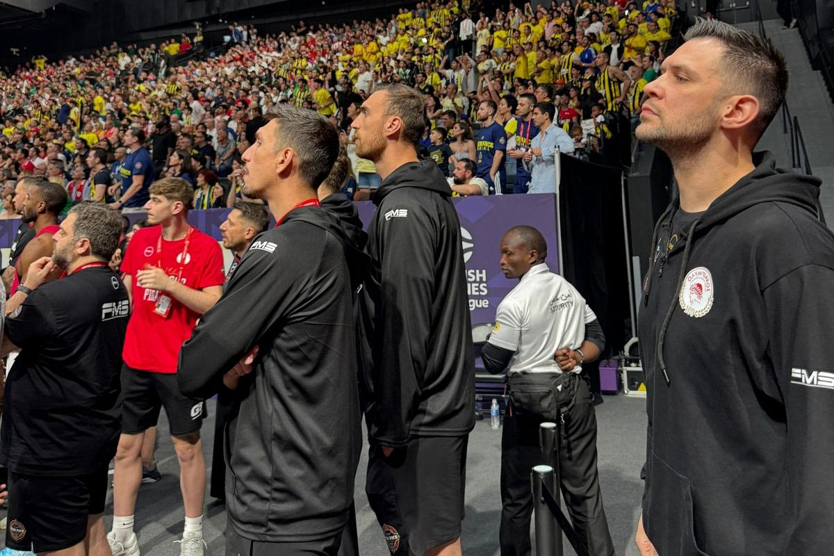 Final Four 2025, Ολυμπιακός: Οι παίκτες των ερυθρολεύκων παρακολουθούν το Φενέρμπαχτσε – Παναθηναϊκός AKTOR στην Etihad Arena